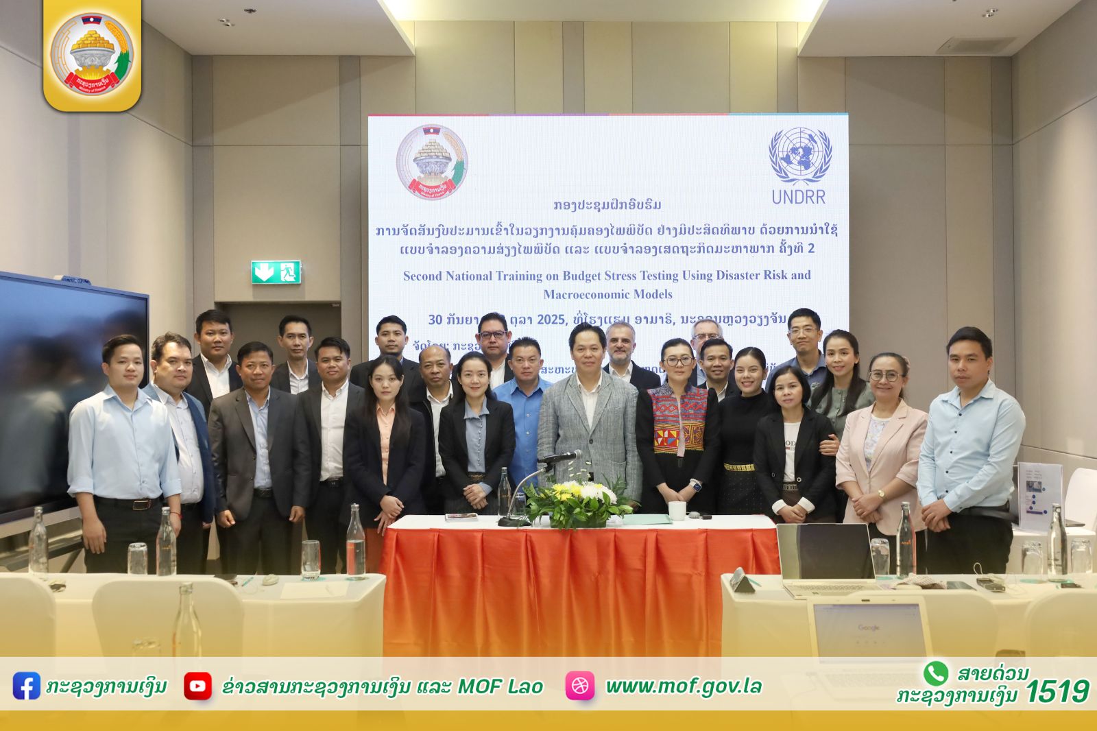 ໃນວັນທີ 30 ກັນຍາ 2025, ກະຊວງການເງິນ ໄດ້ຈັດກອງປະຊຸມ ຝຶກອົບຮົມການຈັດສັນງົບປະມານເຂົ້າໃນວຽກງານຄຸ້ມຄອງຄອງໄພພິບັດ ຢ່າງມີປະສິດທິພາບ ດ້ວຍການນຳໃຊ້ ແບບຈຳລອງຄວາມສ່ຽງໄພພິບັດ ແລະ ແບບຈຳລອງເສດຖະກິດມະຫາພາກ ຄັ້ງທີ 2, ໂດຍການເປັນປະທານຂອງທ່ານ ປອ ສິດທິຣົດ ຣາຊະພົນ ຫົວໜ້າກົມນະໂຍບາຍເສດຖະກິດ ແລະ ການເງິນ, ມີທ່ານ ອໍເພີ ອາຣາສ ຊ່ຽວຊານຫ້ອງການເສດຖະກິດປະຈຳ UNDRR ປະເທດໄທ, ທ່ານ ອໍເມີ້ ຄານ ຄາຣາຮານ ຊ່ຽວຊານດ້ານສະຖິຕິປະຈຳໂຄງການ ພ້ອມດ້ວຍຄະນະກົມກ່ຽວຂ້ອງ ແລະ ແຂກຖຶກເຊີນເຂົ້າຮ່ວມ, ເຊິ່ງກອງປະຊຸມດັ່ງກ່າວໄດ້ຮັບການສະໜັບສະໜູນໂດຍ: ອົງການສະຫະປະຊາຊາດ ເພື່ອຫຼຸດຜ່ອນຄວາມສ່ຽງໄພພິບັດ (UNDRR). ໃນກອງປະຊຸມ ທ່ານ ປອ ສິດທິຣົດ ຣາຊະພົນ ຫົວໜ້າກົມນະໂຍບາຍເສດຖະກິດ ແລະ ການເງິນ ໄດ້ກ່າວວ່າ: ການຝຶກອົບຮົມການຈັດສັນງົບປະມານເຂົ້າໃນວຽກງານຄຸ້ມຄອງຄອງໄພພິບັດ ຢ່າງມີປະສິດທິພາບ ດ້ວຍການນຳໃຊ້ ແບບຈຳລອງຄວາມສ່ຽງໄພພິບັດ ແລະ ແບບຈຳລອງເສດຖະກິດມະຫາພາກ ຄັ້ງທີ 2 ໃນຄັ້ງນີ້ ແມ່ນເປັນການສືບຕໍ່ ຝຶກອົບຮົມທາງອອນລາຍທີ່ບັນດາທ່ານໄດ້ເຂົ້າຮ່ວມຝຶກອົບຮົມ ນັບແຕ່ ວັນທີ 20 ພຶດສະພາ 2025 ເຊິ່ງການຝຶກອົບຮົມໃນຄັ້ງນີ້ ແມ່ນຈະໄດ້ຮັບຟັງການບັນຍາຍຂອງທ່ານ ອໍເມີ້ ຄານ ຄາຣາ ຮານ ຊ່ຽວຊານທາງດ້ານສະຖິຕິປະຈຳໂຄງການ ເພື່ອສຶບຕໍ່ຊຸກຍູ້ກອບການສ້າງຂີດຄວາມສາມາດ ໃຫ້ແກ່ພະນັກງານລັດ ໃຫ້ມີຄວາມຮູ້ດ້ານວິຊາການໃນວຽກງານດັ່ງກ່າວຢ່າງເລີດເຊິງ ແລະ ເປັນວຽກງານໜຶ່ງທີສຳຄັນຕິດພັນໂດຍກົງກັບຄວາມຮັບຜິດຊອບຂອງຂະແໜງການເງິນ ເພື່ອນໍາໃຊ້ເຂົ້າໃນການຄົ້ນຄວ້າ ແລະ ວິເຄາະ ບັນຫາໃຫ້ຖຶກຕ້ອງ, ຊັດເຈນ ແລະ ສອດຄ່ອງກັບສະພາບຄວາມເປັນຈິງ ໃນແຕ່ລະໄລຍະ, ພ້ອມທັງເນັ້ນໃສ່ເສີມສ້າງທັກສະໃນການນໍາໃຊ້ແບບຈໍາລອງເສດຖະກິດມະຫາພາກ ແລະ ການເງິນ (MFMOD) ເພື່ອວິເຄາະຄວາມສ່ຽງໄພພິບັດ ແລະ ນໍາສະເໜີວິທີການເຊື່ອມສານຜົນກະທົບຈາກໄພພິບັດ ເຂົ້າໃນແບບຈໍາລອງເສດຖະກິດມະຫາພາກ, ຄາດຄະເນຜົນກະທົບຂອງເຫດການເຫຼົ່ານີ້ ຕໍ່ເສດຖະກິດມະຫາພາກ ແລະ ງົບປະມານແຫ່ງລັດ, ສະແດງໃຫ້ເຫັນວິທີການລວມເອົາຜົນໄດ້ຮັບຈາກແບບຈໍາລອງ CAT ແລະ ແບບຈໍາລອງເສດຖະກິດມະຫາພາກ ເຂົ້າໃນກອບການວິເຄາະອັນດຽວກັນ ເພື່ອວິເຄາະຕົ້ນທຶນ-ຜົນປະໂຫຍດ ຂອງການນໍາໃຊ້ເຄື່ອງມືນະໂຍບາຍ ແລະ ການຈັດສັນງົບປະມານເຂົ້າໃນວຽກງານຄຸ້ມຄອງໄພພິບັດ ເຂົ້າໃນນະໂຍບາຍການເງິນ ແຕ່ລະໄລຍະຕາມການຫັນວຽກງານຂະແໜງການເງິນເປັນທັນສະໄໝ. ການຝຶກອົບຮົມຄັ້ງນີ້ ຈະໄດ້ຝຶກເປັນ ເວລາ 03 ວັນ ນັບແຕ່ວັນທີ 30 ກັນຍາ ຫາ 02 ຕຸລາ 2025.