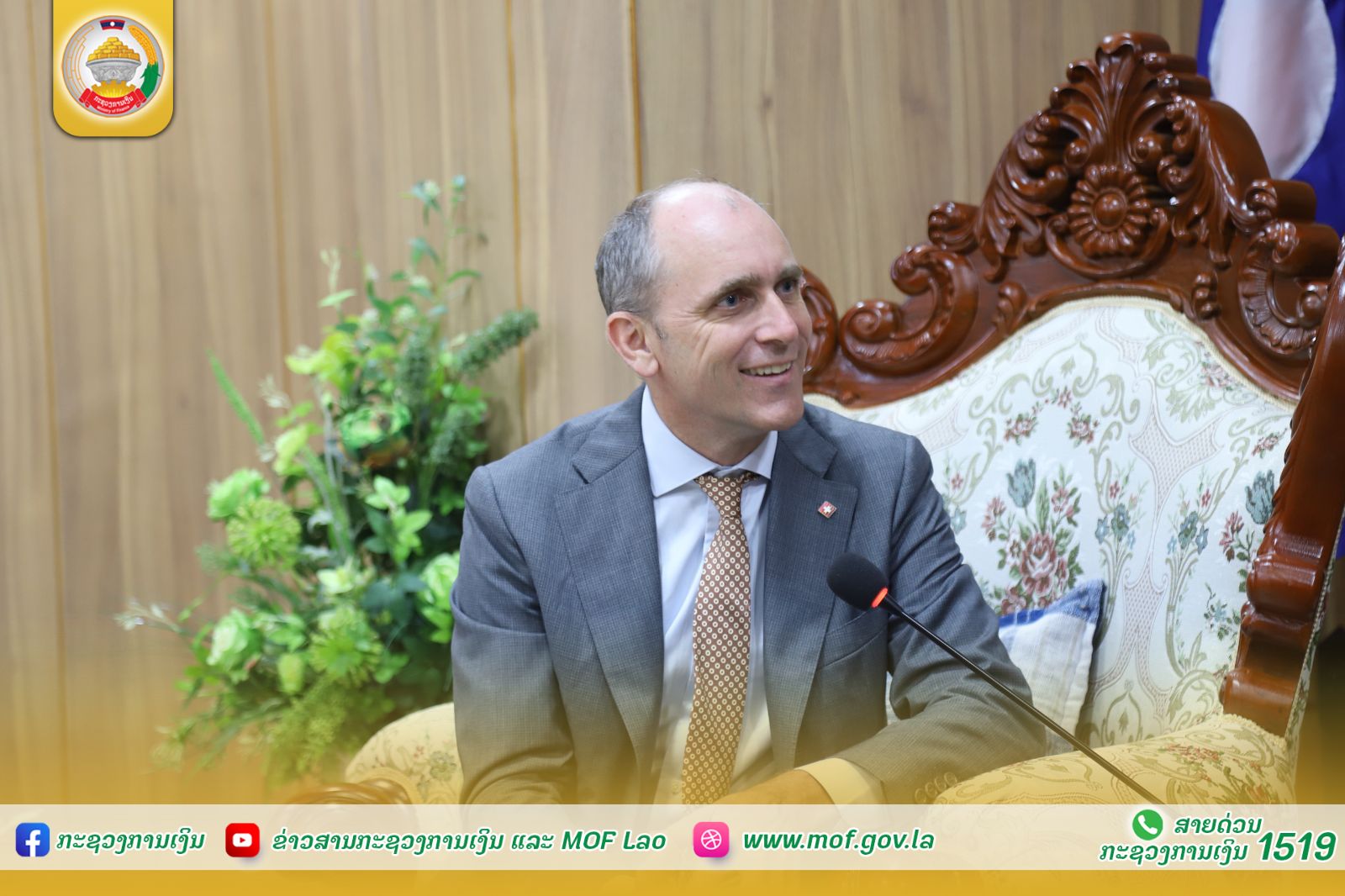 ທ່ານ ສັນຕິພາບ ພົມວິຫານ ລັດຖະມົນຕີ ກະຊວງການເງິນ ຕ້ອນຮັບ ການເຂົ້າຢ້ຽມຂ່ຳນັບຂອງ ທ່ານ Jean Gabriel Duss), ຫົວໜ້າຫ້ອງການຮ່ວມມື ເພື່ອການພັດທະນາ ສະວິດເຊີແລນ ປະຈຳພາກພື້ນແມ່ນ້ຳຂອງ (SDC) ພ້ອມດ້ວຍຄະນະ, ການພົບກັນຄັ້ງນີ້ ເປັນການພົບປະທາງການຄັ້ງທຳອິດ ເພື່ອປຶກສາຫາລືກ່ຽວກັບວຽກງານການຮ່ວມມືສອງຝ່າຍ ພາຍໃຕ້ແຜນຍຸດທະສາດແຜນງານ/ໂຄງການຮ່ວມມືສະວິດເຊີແລນໃນເຂດພາກພື້ນແມ່ນ້ຳຂອງ. ໃນໂອກາດດັ່ງກ່າວ, ທ່ານ Jean Gabriel Duss, ຫົວໜ້າຫ້ອງການຮ່ວມມື ເພື່ອການພັດທະນາ ສະວິດເຊີແລນ ປະຈຳພາກພື້ນແມ່ນ້ຳຂອງ ໄດ້ຕີລາຄາສູງຕໍ່ການຮ່ວມມືອັນດີງາມທີ່ມີມາຍາວນານ ຂອງສອງປະເທດ ລາວ-ສະວິດເຊີແລນ ໃນໄລຍະຜ່ານມາ ພ້ອມທັງຖືໂອກາດດັ່ງກ່າວລາຍງານ ກ່ຽວກັບ ບັນດາໂຄງການ/ແຜນງານ ພາຍໃຕ້ແຜນຍຸດທະສາດການຮ່ວມມືສະວິດເຊີແລນ ໃນເຂດພາກພື້ນແມ່ນ້ຳຂອງ ແລະ ໂຄງການອື່ນໆ ຈຳນວນໜຶ່ງ ທີ່ໃຫ້ການສະໜັບສະ ໜູນ ດ້ານທຶນຮອນ ແລະ ວິຊາການ ທີ່ກໍາລັງຈັດຕັ້ງປະຕິບັດໃນຂະແໜງບູລິມະສິດ ເຊັ່ນ: ການຄຸ້ມຄອງຄວາມປອດໄພຂອງເຂື່ອນ, ການສຳຫຼວດພົນລະເມືອງ, ວຽກງານຄຸ້ມຄອງວາງແຜນຈັດສັນ ແລະ ອອກໃບຕາດິນ ໃຫ້ປະຊາຊົນໃນ 3 ປະເພດປ່າ, ການລົງທຶນດ້ານກະສິກຳແບບມີຄວາມຮັບຜິດຊອບ ແລະ ການປະກອບສ່ວນເຂົ້າໃນວຽກງານກອງທຶນຫຼຸດຜ່ອນຄວາມທຸກຍາກ ເປັນຕົ້ນ, ຊື່ງເປັນການປະກອບສ່ວນທີ່ສຳຄັນເຂົ້າໃນການພັດທະນາເສດຖະກິດ-ສັງຄົມ ຂອງ ສປປ ລາວ. ທ່ານ ລັດຖະມົນຕີ ກະຊວງການເງິນ ໄດ້ສະແດງຄວາມຂອບໃຈຕໍ່ ລັດຖະບານ ແລະ ປະຊາຊົນສະວິດເຊີແລນ ຕໍ່ການສະໜັບສະໜູນດັ່ງກ່າວ ພ້ອມທັງຕີລາຄາສູງຕໍ່ໝາກຜົນຂອງການຮ່ວມມື ລາວ-ສະວິດເຊີແລນ ໃນໄລຍະຜ່ານມາ ທີ່ໄດ້ໃຫ້ການຊ່ວຍເຫຼືອ ສປປ ລາວ ໃນການຈັດຕັ້ງປະຕິບັດແຜນພັດທະນາສາດຖະກິດ-ສັງຄົມແຫ່ງຊາດ. ນອກຈາກນີ້, ຍັງໄດ້ສະເໜີໃຫ້ທັງສອງຝ່າຍສືບຕໍ່ຮັກສາກົນໄກເພື່ອທົບທວນການຮ່ວມມື, ການປະສານງານ ແລະ ການຄຸ້ມຄອງຕິດຕາມບັນດາໂຄງການ/ແຜນງານທີ່ກຳລັງຈັດຕັ້ງປະຕິບັດ ໃຫ້ມີປະສິດທິຜົນ. ໃນຕອນທ້າຍ, ທ່ານ ລັດຖະມົນຕີ ກະຊວງການເງິນ ໄດ້ສະແດງຄວາມຂອບໃຈຕໍ່ ລັດຖະບານ ສະວິດເຊີແລນສຳລັບການຊ່ວຍເຫຼືອ ແລະ ສືບຕໍ່ສະໜັບສະໜູນ ໃຫ້ແກ່ ສປປ ລາວ ໃນການຈັດຕັ້ງປະຕິບັດແຜນພັດທະນາເສດຖະກິດ-ສັງຄົມ ແຫ່ງຊາດ ໂດຍຜ່ານອົງການ SDC ແລະ ພ້ອມທີ່ຈະໃຫ້ການຮ່ວມມືສະໜັບສະໜູນວຽກງານການຮ່ວມມື ຂອງ ສອງປະເທດ ໃຫ້ເຕີບໃຫຍ່ຍິ່ງຂຶ້ນ.