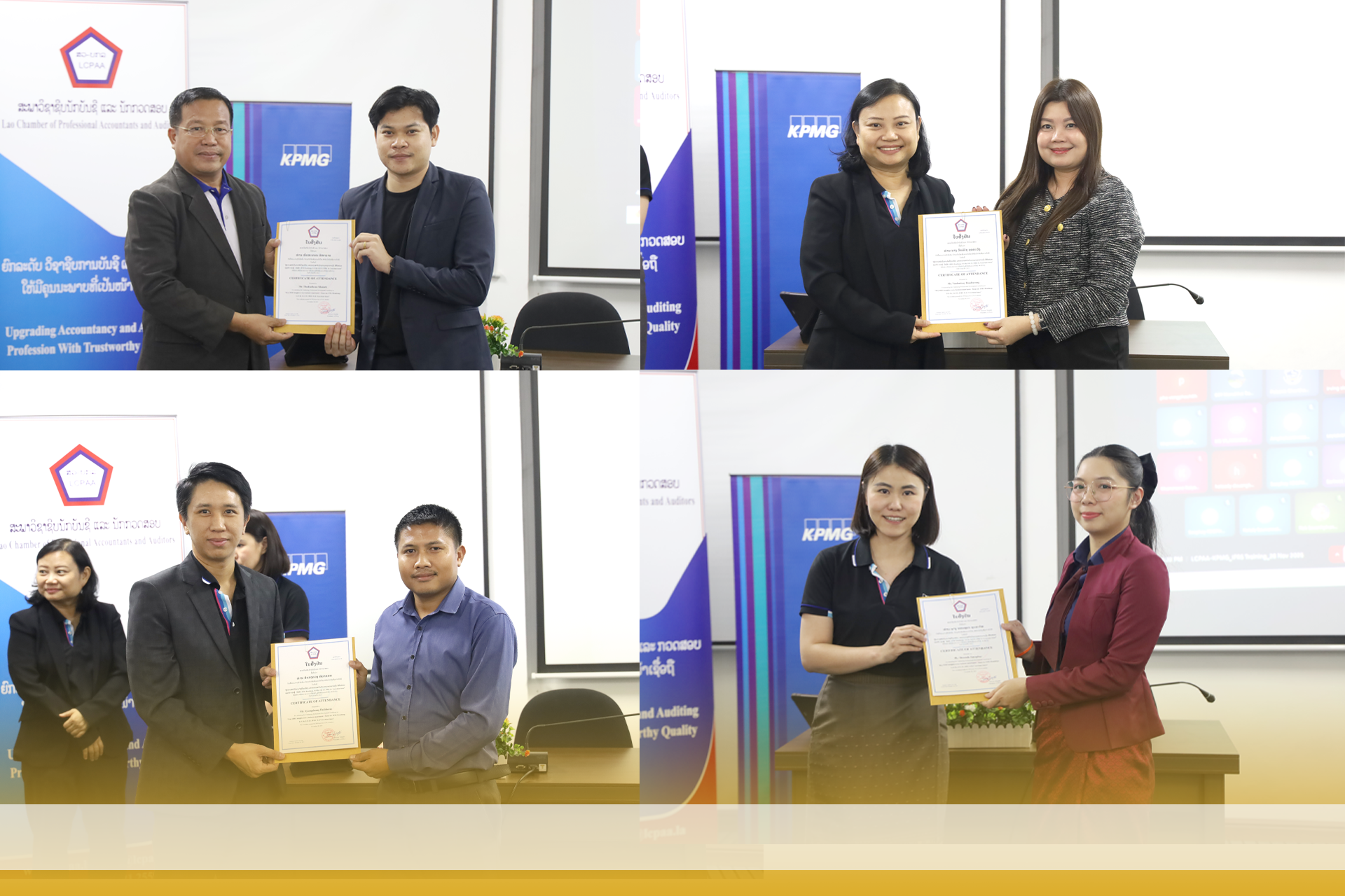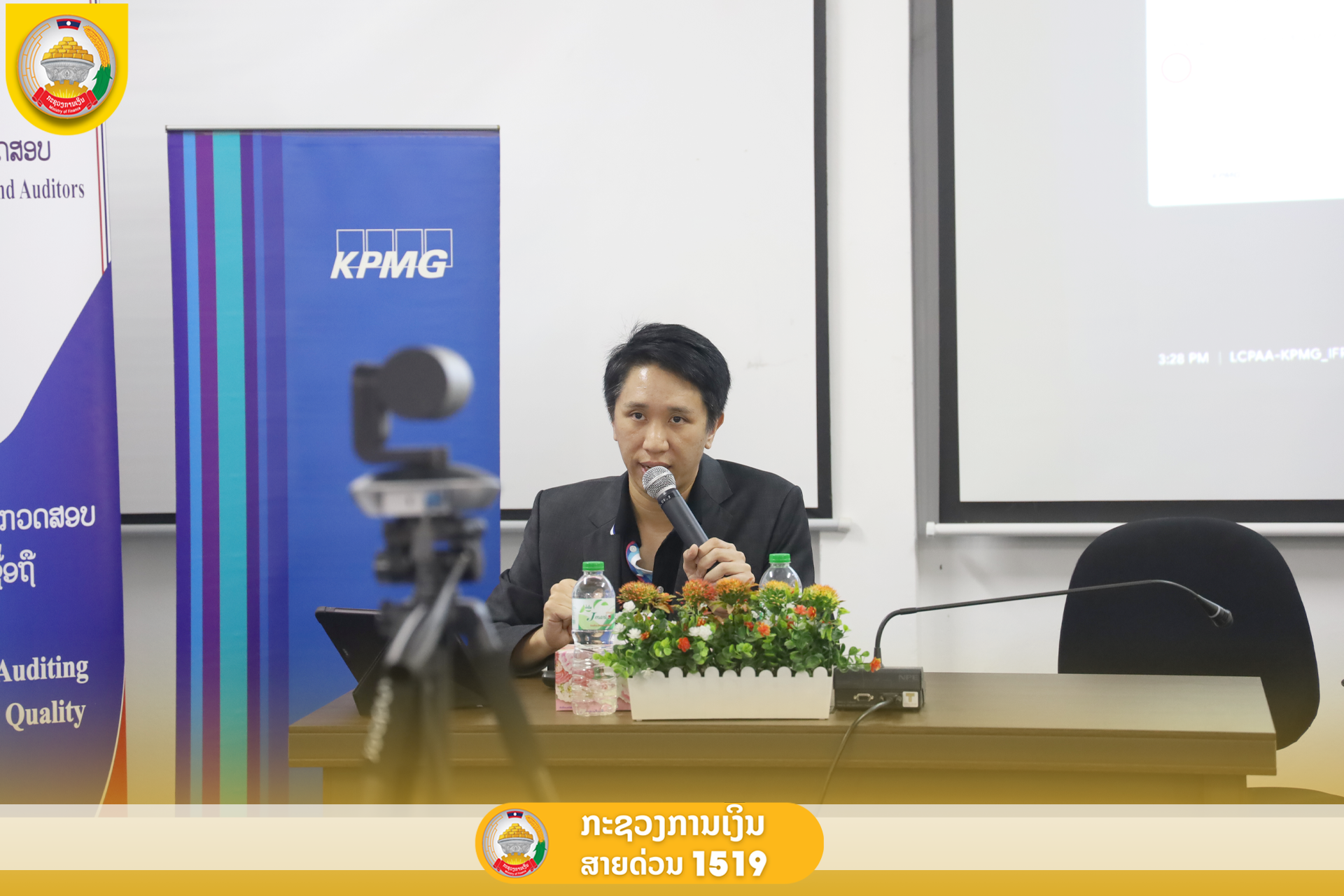 ໃນວັນທີ 28 ພະຈິກ 2025 ທີ່ຜ່ານມາ, ສະພາວິຊາຊີບ ນັກບັນຊີ ແລະ ນັກກວດສອບ (ສວ-ບກລ) ໄດ້ຈັດຝຶກອົບຮົມ ໃນຫົວຂໍ້: ມາດຕະຖານການລາຍງານການເງິນສາກົນ IFRS ( Key IFRS insights every business must know ) ໂດຍການເປັນປະທານຂອງ ທ່ານ ສອນໄຊ ສີລາເພັດ ປະທານສະພາວິຊາຊີບນັກບັນຊີ ແລະ ນັກກວດສອບ, ມີທ່ານ ຢຸດຕະພົງ ສູນທະລິນຄະ ຕາງໜ້າບໍລິສັດ KPMG LAO. LTD ພ້ອມດ້ວຍຄະນະຜູ້ບັນຍາຍ, ນັກຝຶກອົບຮົມ CPA, ພະນັກງານວິຊາການ ສວ-ບກລ ແລະ ນັກສໍາມະນາກອນ ເຂົ້າຮ່ວມ.