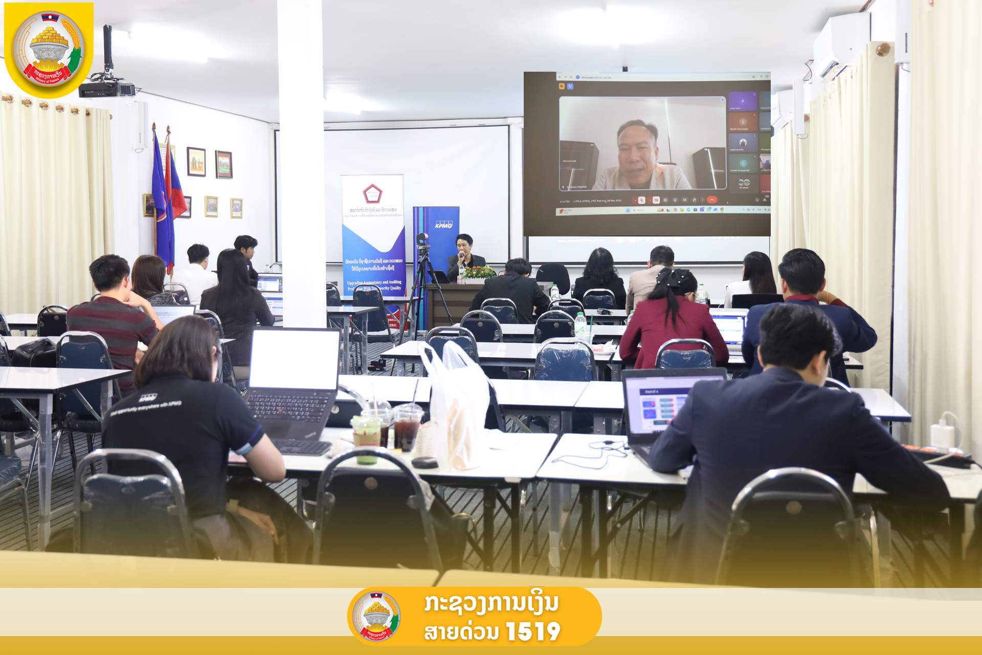 ການຝຶກອົບຮົມຄັ້ງນີ້ ຈັດໃນຮູບແບບເຊິ່ງໜ້າ ແລະ ອອນລາຍ ໂດຍການບັນຍາຍຂອງວິທະຍາກອນ ຈາກບໍລິສັດ KPMG LAO. LTD ເຊິ່ງໄດ້ຝຶກໃນຫົວຂໍ້: ມາດຕະຖານການລາຍງານການເງິນສາກົນ IFRS ( Key IFRS insights every business must know ) ໂດຍໄດ້ລົງເລິກກ່ຽວກັບ: