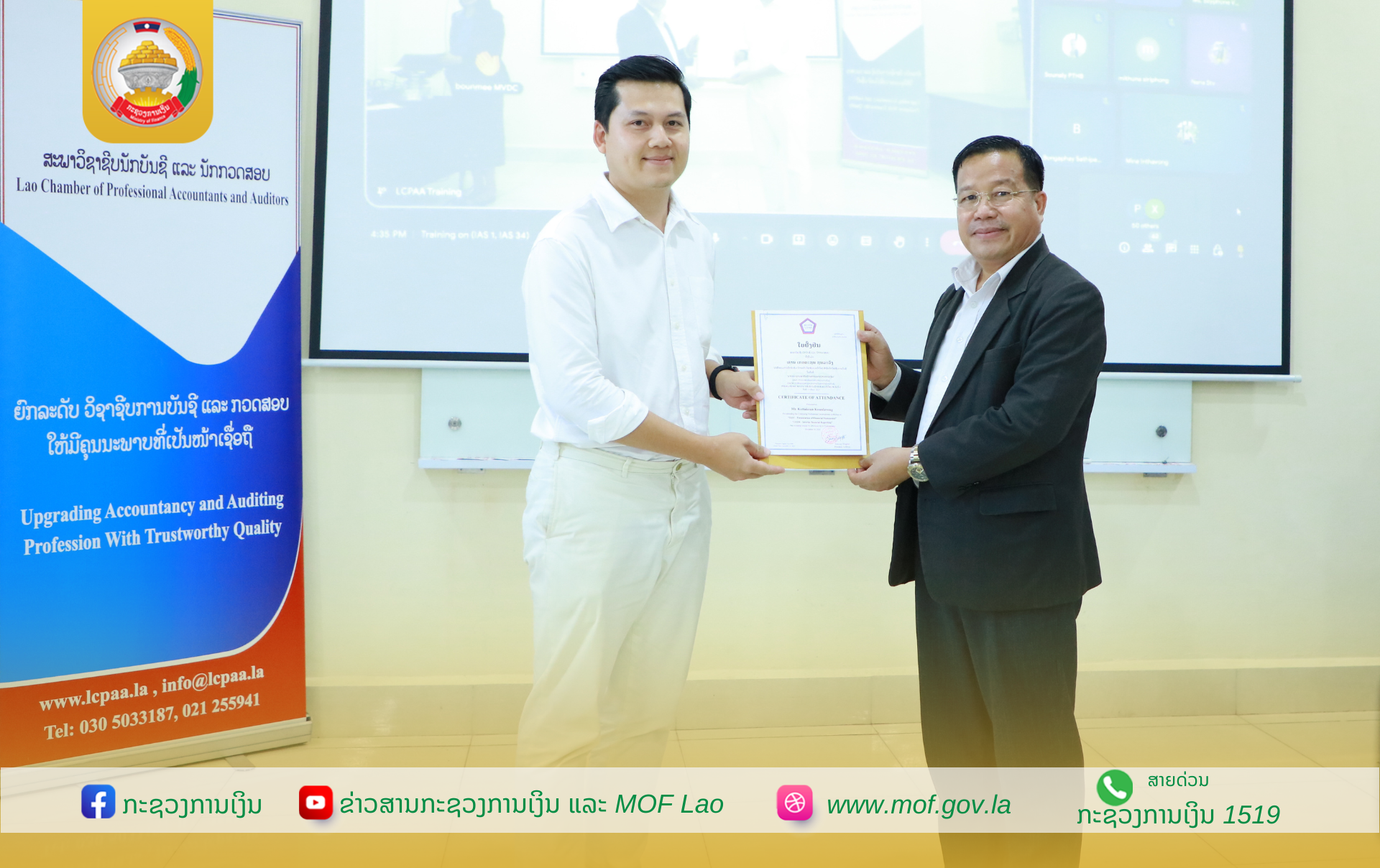 ໃນວັນທີ 19 ທັນວາ 2025 ສະພາວິຊາຊີບ ນັກບັນຊີ ແລະ ນັກກວດສອບ ຮ່ວມກັບ ບໍລິສັດ PwC (Lao) ໄດ້ຈັດຝຶກອົບຮົມຮ່ວມກັນຂຶ້ນ ພາຍໄຕ້ຫົວຂໍ້: ມາດຕະຖານສາກົນດ້ານການລາຍງານການເງິນ_IAS 1 ແລະ IAS 34 ເຊິ່ງການຝືກອົບຮົມໄດ້ຈັດໃນແບບ ເຊິ່ງໜ້າ ແລະ ທາງອອນລາຍ ຜ່ານ Google meet ໂດຍການເປັນປະທານຂອງ ທ່ານ ສອນໄຊ ສີລາເພັດ ປະທານ ສະພາວິຊາຊີບນັກບັນຊີ ແລະ ນັກກວດສອບ LCPAA (ສວ-ບກລ) ມີຜູ້ເຂົ້້າຮ່ວມຝຶກອົບຮົມທັງໝົດມີ 130 ທ່ານ ທີ່ມາຈາກຫຼາຍພາກສ່ວນ ເຊັ່ນ: ຕາງໜ້າພະນັກງານວິຊາການ ທີ່ເປັນແຂກຖືກເຊີນ ຂອງ ສວ-ບກລ ແລະ ບໍລິສັດ PwC (Lao) ລວມ 38 ທ່ານ, ສະມາຊິກ ບຸກຄົນ ຂອງ ສວ-ບກລ 78 ທ່ານ, ນັກຝຶກອົບຮົມ CPA 8 ທ່ານ ແລະ ບຸກຄົນທົ່ວໄປ 6 ທ່ານ.