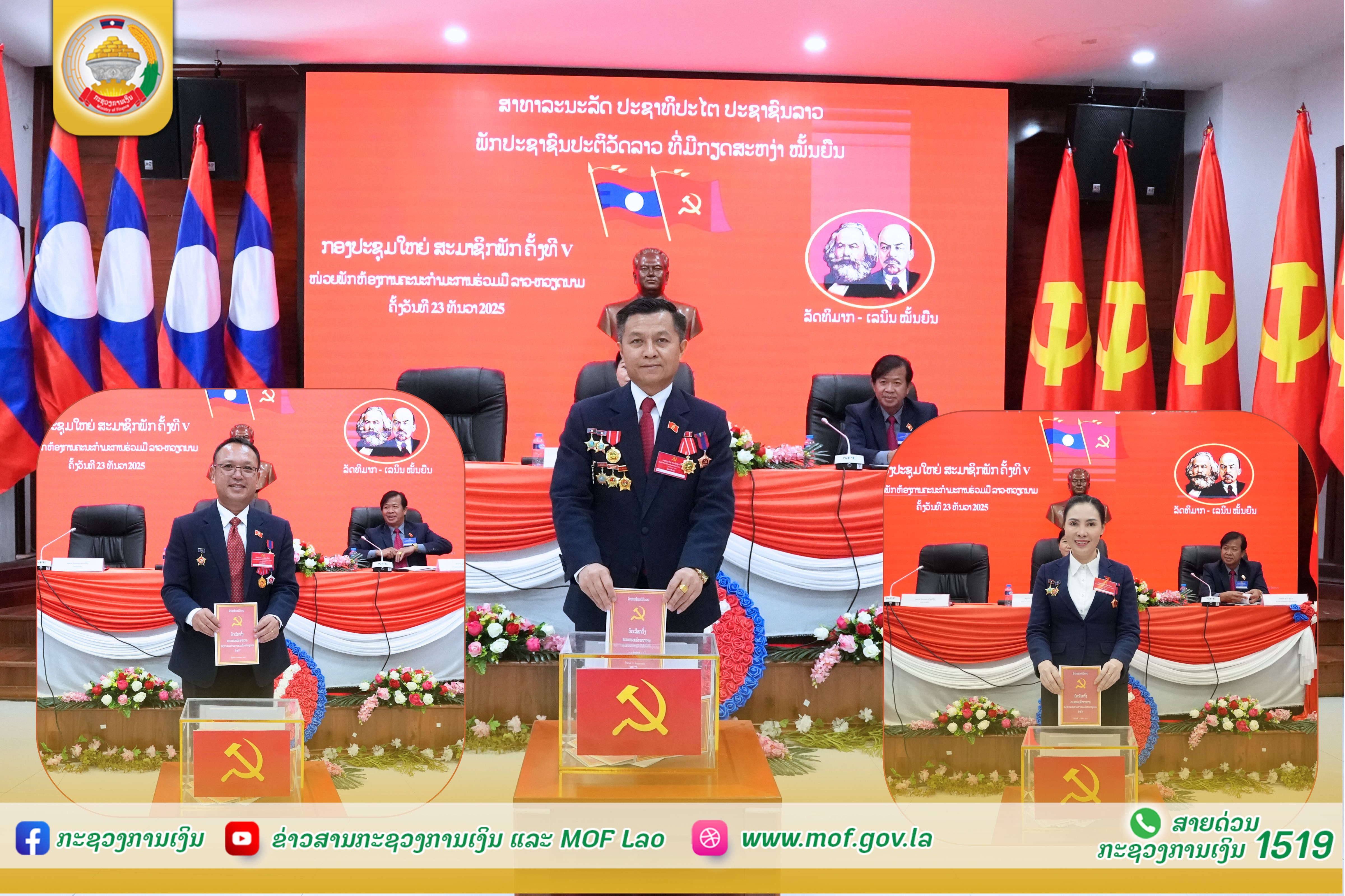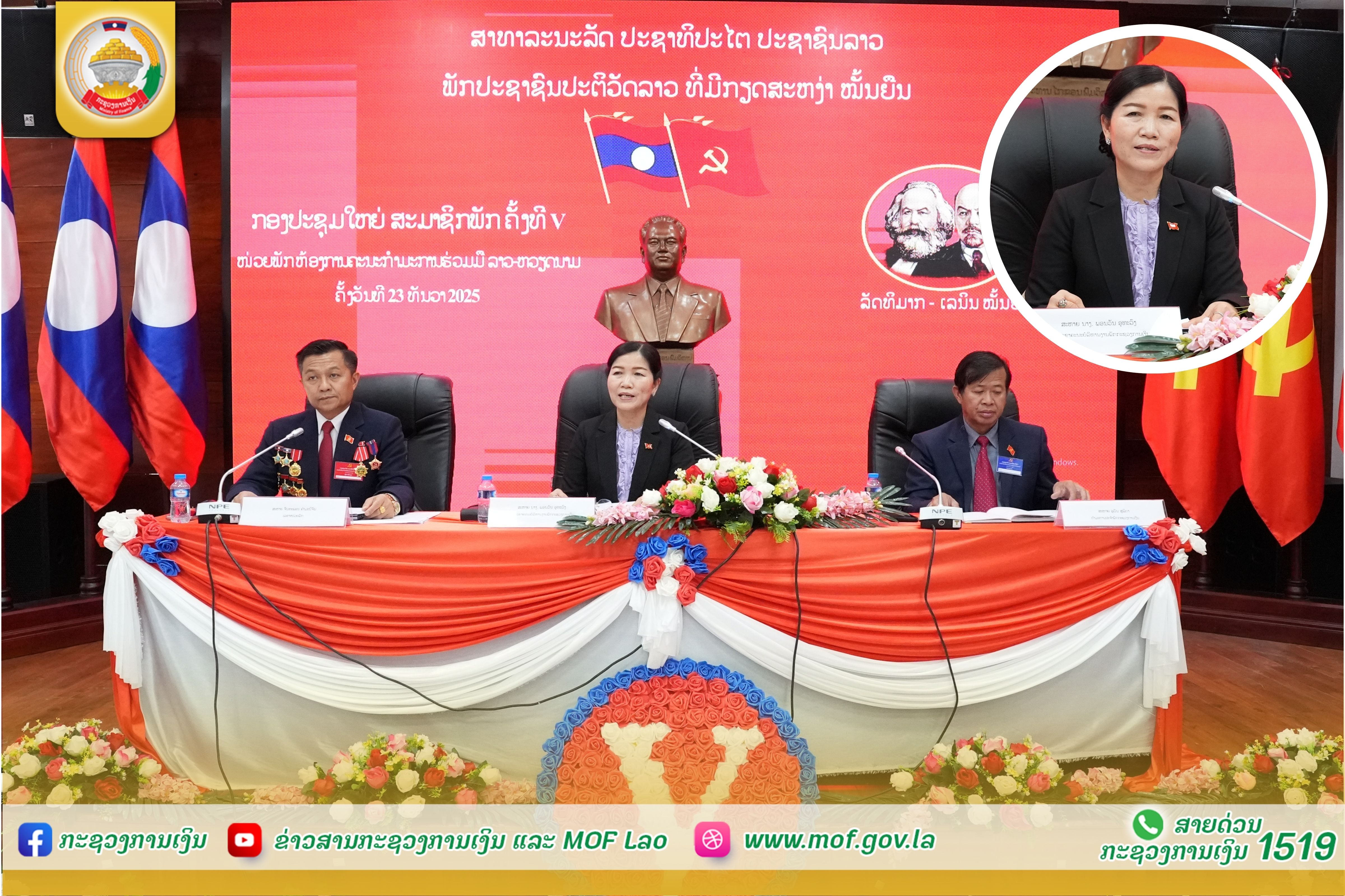 ກອງປະຊຸມໃຫຍ່ ຄັ້ງທີ V ໜ່ວຍພັກຮາກຖານຫ້ອງການຄະນະກໍາມະການຮ່ວມມື ລາວ-ຫວຽດນາມ ໄດ້ໄຂ ຂຶ້ນຢ່າງເປັນທາງການ ໃນວັນທີ 23 ທັນວາ 2025 ໂດຍໃຫ້ກຽດເຂົ້າຮ່ວມເປັນປະທານຂອງສະຫາຍ ນາງ ພອນວັນ ອຸທະວົງ, ຮອງເລຂາຄະນະບໍລິຫານງານພັກ, ຮອງລັດຖະມົນຕີກະຊວງການເງິນ, ຮອງປະທານຜູ້ປະຈໍາການຄະນະກໍາມະການຮ່ວມມື ລາວ-ຫວຽດນາມ; ສະຫາຍ ອຸບັນ ສຸພິດາ ຄະນະປະຈໍາພັກກະຊວງ, ຫົວໜ້າກົມຈັດຕັ້ງ ແລະ ສະຫາຍ ຈັນທະພອນ ຄໍາມະນີຈັນ ເລຂາໜ່ວຍພັກຮາກຖານ ຫ້ອງການຄະນະກຳມະການຮ່ວມມື ລາວ - ຫວຽດນາມ, ມີບັນດາສະຫາຍເລຂາ, ຮອງເລຂາໜ່ວຍພັກຮາກຖານ ອ້ອມຂ້າງກະຊວງການເງິນ, ສະມາຊິກພັກສົມບູນ-ສໍາຮອງ ແລະ ມະຫາຊົນກ້າວໜ້າພາຍໃນໜ່ວຍພັກ ເຂົ້າຮ່ວມ. ກອງປະຊຸມ ໄດ້ຮັບຟັງບົດລາຍງານການເມືອງ, ບົດສຳຫຼວດການນຳພາລວມ ແລະ ບົດສະຫຼຸບການຈັດຕັ້ງປະຕິບັດແຜນພັດທະນາຂອງໜ່ວຍພັກຮາກຖານຫ້ອງການຄະນະກຳມະການຮ່ວມມື ລາວ-ຫວຽດນາມ ຕະຫຼອດໄລຍະ 01 ສະໄໝຜ່ານມາ ເຊິ່ງເຫັນໄດ້ຜົນສໍາເລັດ ແລະ ຜົນງານອັນພົ້ນເດັ່ນຫຼາຍດ້ານ ທີ່ສາມາດຍາດມາໄດ້, ສະແດງໃຫ້ເຫັນດ້ານດີ, ດ້ານອ່ອນ, ຂໍ້ຄົງຄ້າງ, ມາດຕະການແກ້ໄຂໃນຕໍ່ໜ້າ; ພ້ອມທັງໄດ້ຮັບຮອງເອົາບົດລາຍງານການເມືອງ, ທິດທາງ, ແຜນການ ແລະ ຄາດໝາຍສູ້ຊົນການພັດທະນາຂະແໜງການ ໃນ 01 ສະໄໝຕໍ່ໜ້າ ກໍ່ຄືໄລຍະ 2026 – 2030. ຈາກນັ້ນ, ບັນດາສະມາຊິກພັກ ໜ່ວຍພັກຮາກຖານຫ້ອງການຄະນະກຳມະການຮ່ວມມື ລາວ-ຫວຽດນາມ ກໍ່ໄດ້ພ້ອມກັນໃຊ້ສິດປະຊາທິປະໄຕຂອງຕົນ ປ່ອນບັດຄັດເລືອກເອົາຄະນະໜ່ວຍພັກຊຸດໃໝ່ ບົນພື້ນຖານຫຼັກການລວມສູນປະຊາທິປະໄຕ ຖືກຕ້ອງສອດຄ່ອງກັບມາດຖານເງື່ອນໄຂທີ່ກຳນົດໄວ້ ເຊິ່ງມີຜູ້ອອກຮັບເລືອກຕັ້ງທັງໝົດ 05 ສະຫາຍ,ຍິງ 01 ສະຫາຍ ແລະ ສາມາດເລືອກໄດ້ 03 ສະຫາຍ; ກອງປະຊຸມຄັ້ງປະຖົມມະລຶກ ຂອງໜ່ວຍພັກຮາກຖານ ຫ້ອງການຄະນະກຳມະການຮ່ວມມື ລາວ-ຫວຽດນາມ ເປັນເອກະສັນ ເລືອກເອົາ: ໂອກາດດັ່ງກ່າວ, ສະຫາຍ ນາງ ພອນວັນ ອຸທະວົງ, ຮອງເລຂາຄະນະບໍລິຫານງານພັກ, ຮອງລັດຖະມົນຕີ ກະຊວງການເງິນ, ຮອງປະທານຜູ້ປະຈໍາການຄະນະກໍາມະການຮ່ວມມື ລາວ-ຫວຽດນາມ ໄດ້ສະແດງຄວາມຊົມເຊີຍຕໍ່ການນຳພາ-ຊີ້ນຳສະມາຊິກພັກ-ພະນັກງານຂອງຄະນະໜ່ວຍພັກ ໃນການປະຕິບັດໜ້າທີ່ການເມືອງຂອງຕົນ ເຊິ່ງຍາດໄດ້ຜົນງານ ແລະ ຜົນສຳເລັດຫຼາຍດ້ານ ໃນໄລຍະຜ່ານມາ; ພ້ອມກັນນັ້ນ ສະຫາຍ ຍັງໄດ້ຮຽກຮ້ອງໃຫ້ ຄະນະໜ່ວຍພັກຮາກຖານຫ້ອງການຄະນະກຳມະການຮ່ວມມື ລາວ-ຫວຽດນາມ ຕ້ອງໄດ້ສືບຕໍ່ນຳພາປັບປຸງແກ້ໄຂຈຸດອ່ອນ, ຂໍ້ຄົງຄ້າງ ແລະ ເນັ້ນໜັກ ຄະນະໜ່ວຍພັກ ຊຸດໃໝ່ ເພີ່ມທະວີສຶກສາອົບຮົມການເມືອງ-ແນວຄິດ ໃຫ້ສະມາຊິກພັກ-ພະນັກງານ ທັງໝົດພາຍໃນໜ່ວຍພັກ, ເຊີດຊູສະຕິປັນຍາ, ຄວາມຮັບຜິດຊອບຕໍ່ໜ້າທີ່ການເມືອງຂອງຕົນ ໃຫ້ສູງຂຶ້ນ ເພື່ອປະຕິບັດວຽກງານວິຊາສະເພາະ ໃຫ້ມີການຫັນປ່ຽນໃໝ່ຢ່າງຕັ້ງໜ້າ ແລະ ດີຂຶ້ນເທື່ອລະກ້າວ ແນໃສ່ກໍ່ສ້າງໜ່ວຍພັກມີຄວາມປອດໃສ, ເຂັ້ມແຂ