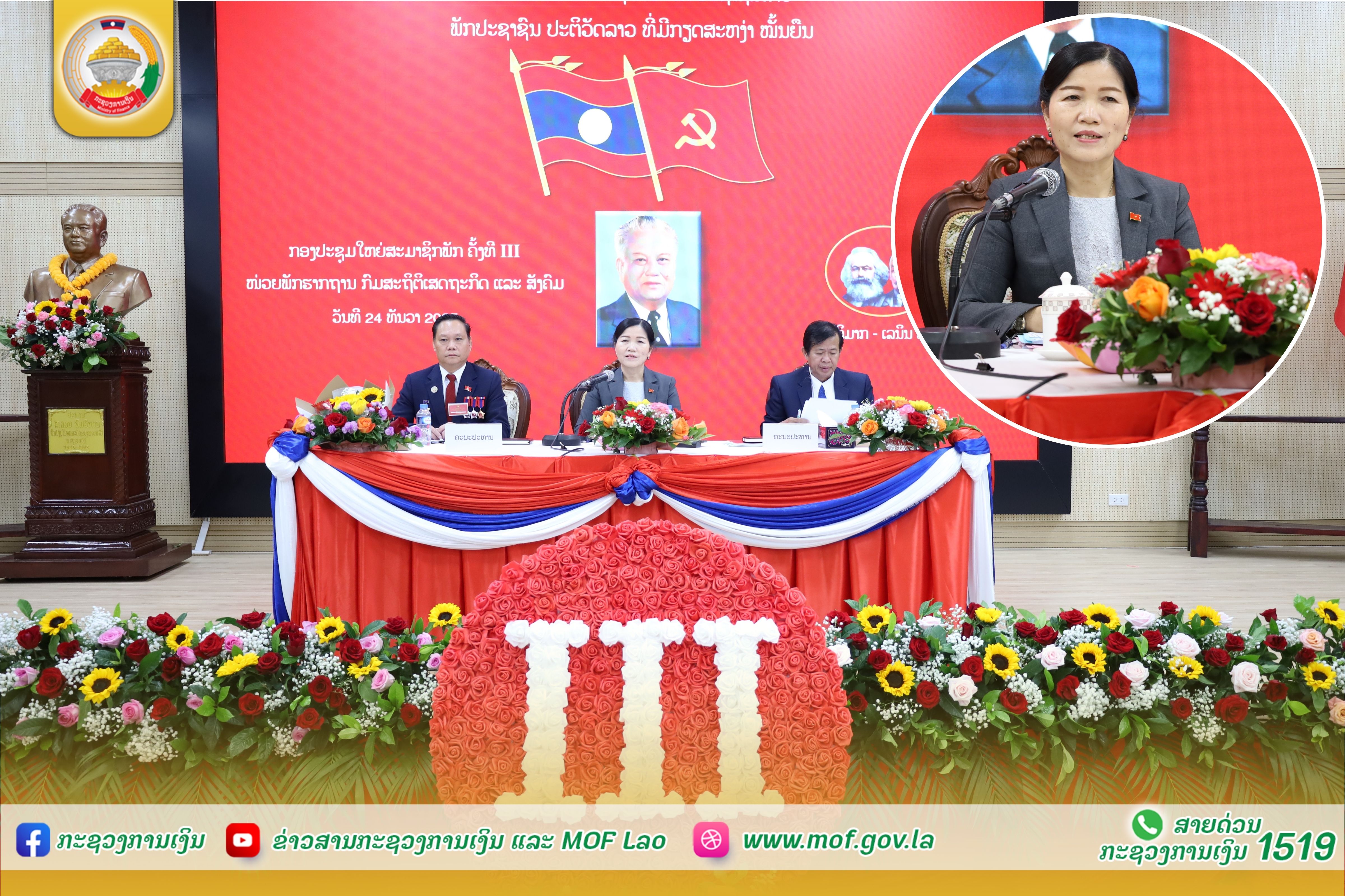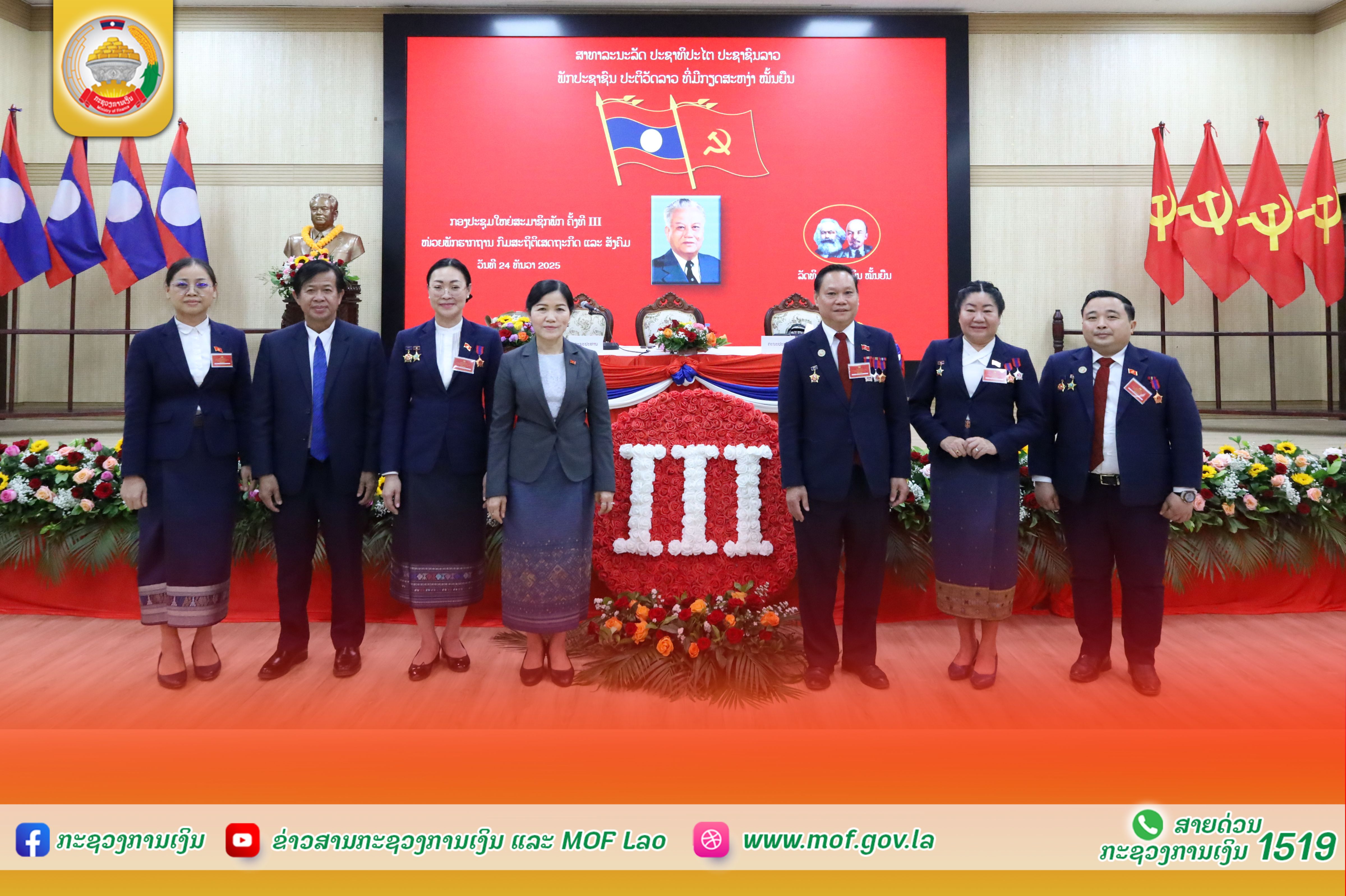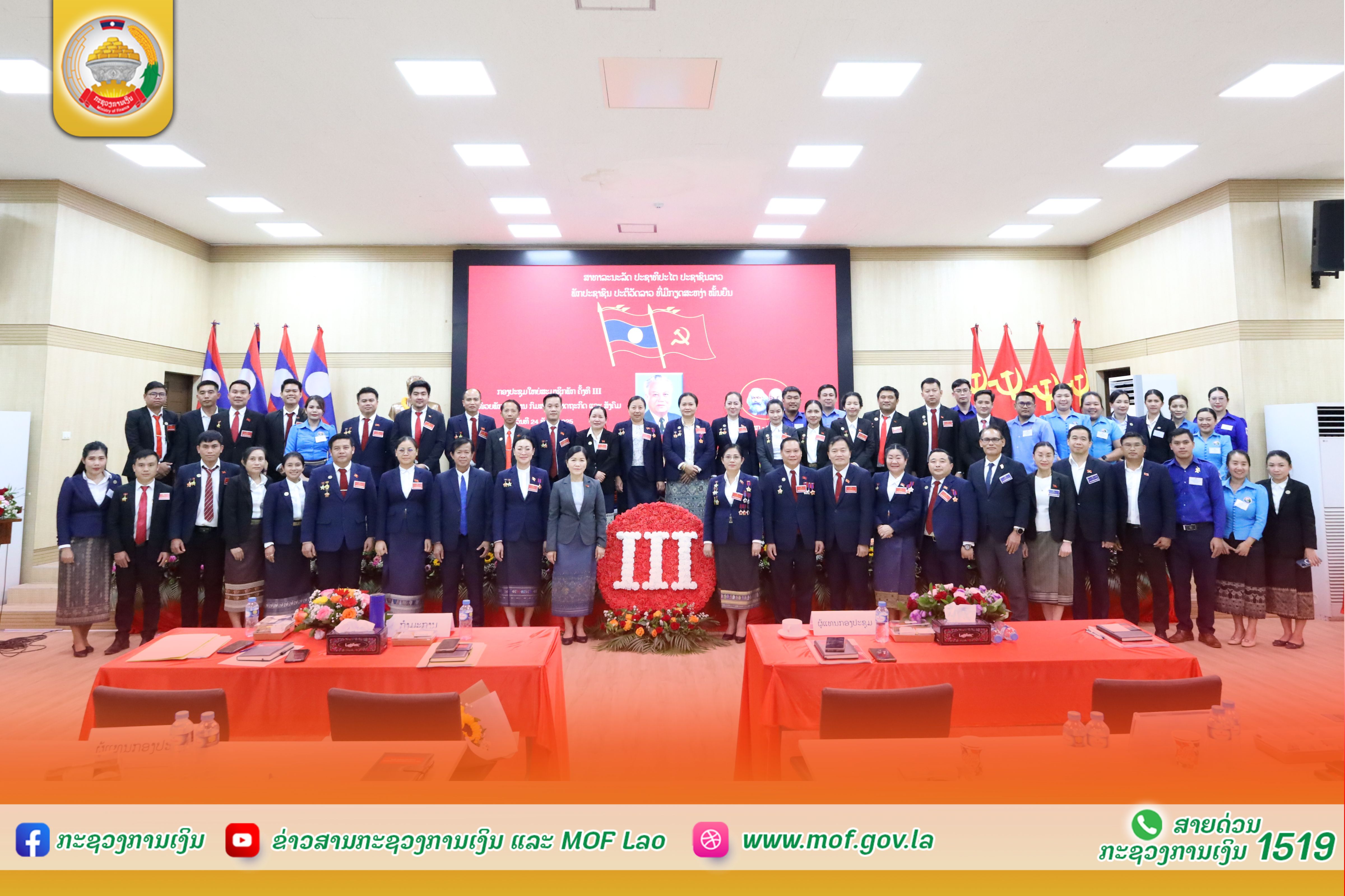 ກອງປະຊຸມໃຫຍ່ ສະມາຊິກພັກ ຄັ້ງທີ III ໜ່ວຍພັກຮາກຖານກົມສະຖິຕິເສດຖະກິດ ແລະ ສັງຄົມ ໄດ້ໄຂຂຶ້ນຢ່າງເປັນທາງການ ໃນວັນທີ 24 ທັນວາ 2025 ໂດຍໃຫ້ກຽດເຂົ້າຮ່ວມເປັນປະທານຂອງສະຫາຍ ນາງ ພອນວັນ ອຸທະວົງ ຮອງເລຂາຄະນະບໍລິຫານງານພັກກະຊວງ ຮອງລັດຖະມົນຕີກະຊວງການເງິນ, ສະຫາຍ ອຸບັນ ສຸພິດາ ຄະນະປະຈໍາພັກກະຊວງ, ຫົວໜ້າກົມຈັດຕັ້ງ ແລະ ສະຫາຍ ລຽນທອງ ສຸພານີ ເລຂາໜ່ວຍພັກຮາກຖານກົມສະຖິຕິເສດຖະກິດ ແລະ ສັງຄົມ, ພ້ອມດ້ວຍຄະນະໜ່ວຍພັກຮາກຖານກົມ, ສະມາຊິກພັກສົມບູນ-ສໍາຮອງ ແລະ ແຂກຖືກເຊີນ ເຂົ້າຮ່ວມ. ກອງປະຊຸມ ໄດ້ຮັບຟັງບົດລາຍງານການເມືອງ, ບົດສຳຫຼວດການນຳພາລວມ ແລະ ບົດສະຫຼຸບການຈັດຕັ້ງປະຕິບັດແຜນພັດທະນາຂອງໜ່ວຍພັກຮາກຖານກົມສະຖິຕິເສດຖະກິດ ແລະ ສັງຄົມ ຕະຫຼອດໄລຍະ 01 ສະໄໝຜ່ານມາ ເຊິ່ງເຫັນໄດ້ຜົນສໍາເລັດ ແລະ ຜົນງານອັນພົ້ນເດັ່ນຫຼາຍດ້ານ ທີ່ສາມາດຍາດມາໄດ້, ສະແດງໃຫ້ເຫັນດ້ານດີ, ດ້ານອ່ອນ, ຂໍ້ຄົງຄ້າງ, ມາດຕະການແກ້ໄຂໃນຕໍ່ໜ້າ; ພ້ອມທັງໄດ້ຮັບຮອງເອົາບົດລາຍງານການເມືອງ, ທິດທາງ, ແຜນການ ແລະ ຄາດໝາຍສູ້ຊົນການພັດທະນາຂະແໜງການ ໃນ 01 ສະໄໝຕໍ່ໜ້າ ກໍ່ຄືໄລຍະ 2026 – 2030. ຈາກນັ້ນ, ບັນດາສະມາຊິກພັກ ໜ່ວຍພັກຮາກຖານກົມສະຖິຕິເສດຖະກິດ ແລະ ສັງຄົມ ກໍ່ໄດ້ພ້ອມກັນໃຊ້ສິດປະຊາທິປະໄຕຂອງຕົນ ປ່ອນບັດຄັດເລືອກເອົາຄະນະໜ່ວຍພັກຊຸດໃໝ່ ບົນພື້ນຖານຫຼັກການລວມສູນປະຊາທິປະໄຕ ຖືກຕ້ອງສອດຄ່ອງກັບມາດຖານເງື່ອນໄຂທີ່ກຳນົດໄວ້ ເຊິ່ງມີຜູ້ອອກຮັບເລືອກຕັ້ງທັງໝົດ 07 ສະຫາຍ, ຍິງ 04 ສະຫາຍ ແລະ ສາມາດເລືອກໄດ້ 05 ສະຫາຍ; ກອງປະຊຸມຄັ້ງປະຖົມມະລຶກ ຂອງໜ່ວຍພັກຮາກຖານ ກົມສະຖິຕິເສດຖະກິດ ແລະ ສັງຄົມ ເປັນເອກະສັນ ເລືອກເອົາເລຂາ, ຮອງເລຂາ, ປະທານກວດກາພັກ ແລະ ກຳມະການໜ່ວຍພັກຮາກຖານ ຊຸດໃໝ່ ດັ່ງນີ້: ໂອກາດດັ່ງກ່າວ, ສະຫາຍ ນາງ ພອນວັນ ອຸທະວົງ ຮອງເລຂາຄະນະບໍລິຫານງານພັກກະຊວງ, ຮອງລັດຖະມົນຕີ ກະຊວງການເງິນ ໄດ້ສະແດງຄວາມຊົມເຊີຍຕໍ່ການນຳພາ-ຊີ້ນຳສະມາຊິກພັກ-ພະນັກງານ ຂອງຄະນະໜ່ວຍພັກ ໃນການປະຕິບັດໜ້າທີ່ການເມືອງຂອງຕົນ ເຊິ່ງຍາດໄດ້ຜົນງານ ແລະ ຜົນສຳເລັດຫຼາຍດ້ານ ໃນໄລຍະຜ່ານມາ; ພ້ອມກັນນັ້ນ ສະຫາຍ ຍັງໄດ້ຮຽກຮ້ອງໃຫ້ ຄະນະໜ່ວຍພັກຮາກຖານກົມສະຖິຕິເສດຖະກິດ ແລະ ສັງຄົມ ຕ້ອງໄດ້ສືບຕໍ່ນຳພາປັບປຸງແກ້ໄຂຈຸດອ່ອນ, ຂໍ້ຄົງຄ້າງ ແລະ ເນັ້ນໜັກ ຄະນະໜ່ວຍພັກ ຊຸດໃໝ່ ເພີ່ມທະວີສຶກສາອົບຮົມການເມືອງ-ແນວຄິດ ໃຫ້ສະມາຊິກພັກ-ພະນັກງານ ທັງໝົດພາຍໃນໜ່ວຍພັກ, ເຊີດຊູສະຕິປັນຍາ, ຄວາມຮັບຜິດຊອບຕໍ່ໜ້າທີ່ການເມືອງຂອງຕົນ ໃຫ້ສູງຂຶ້ນ ເພື່ອປະຕິບັດວຽກງານວິຊາສະເພາະ ໃຫ້ມີການຫັນປ່ຽນໃໝ່ຢ່າງຕັ້ງໜ້າ ແລະ ດີຂຶ້ນເທື່ອລະກ້າວ ແນໃສ່ກໍ່ສ້າງໜ່ວຍພັກມີຄວາມປອດໃສ, ເຂັ້ມແຂງ ແລະ ໜັກແໜ້ນ.
