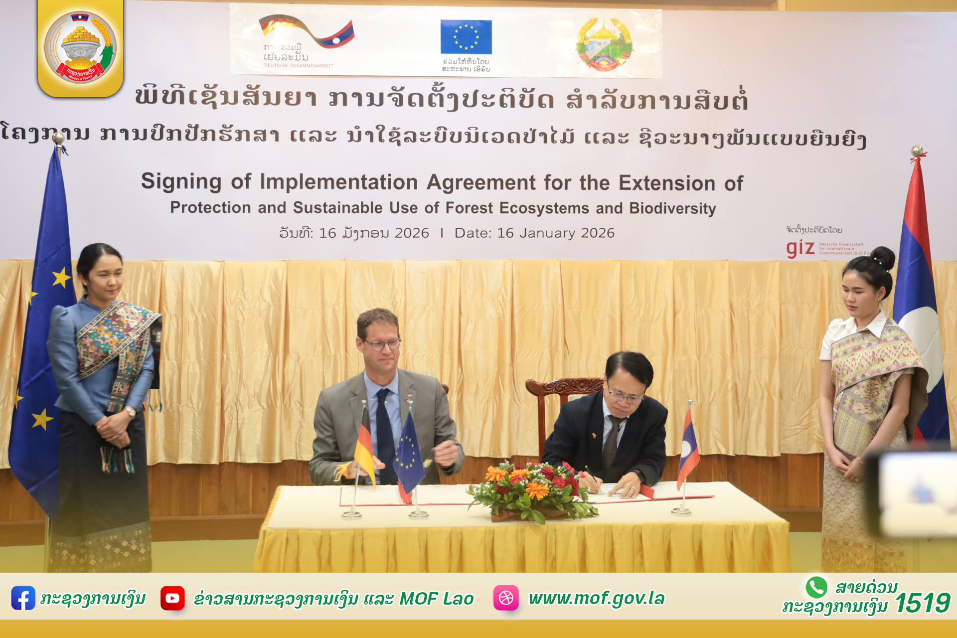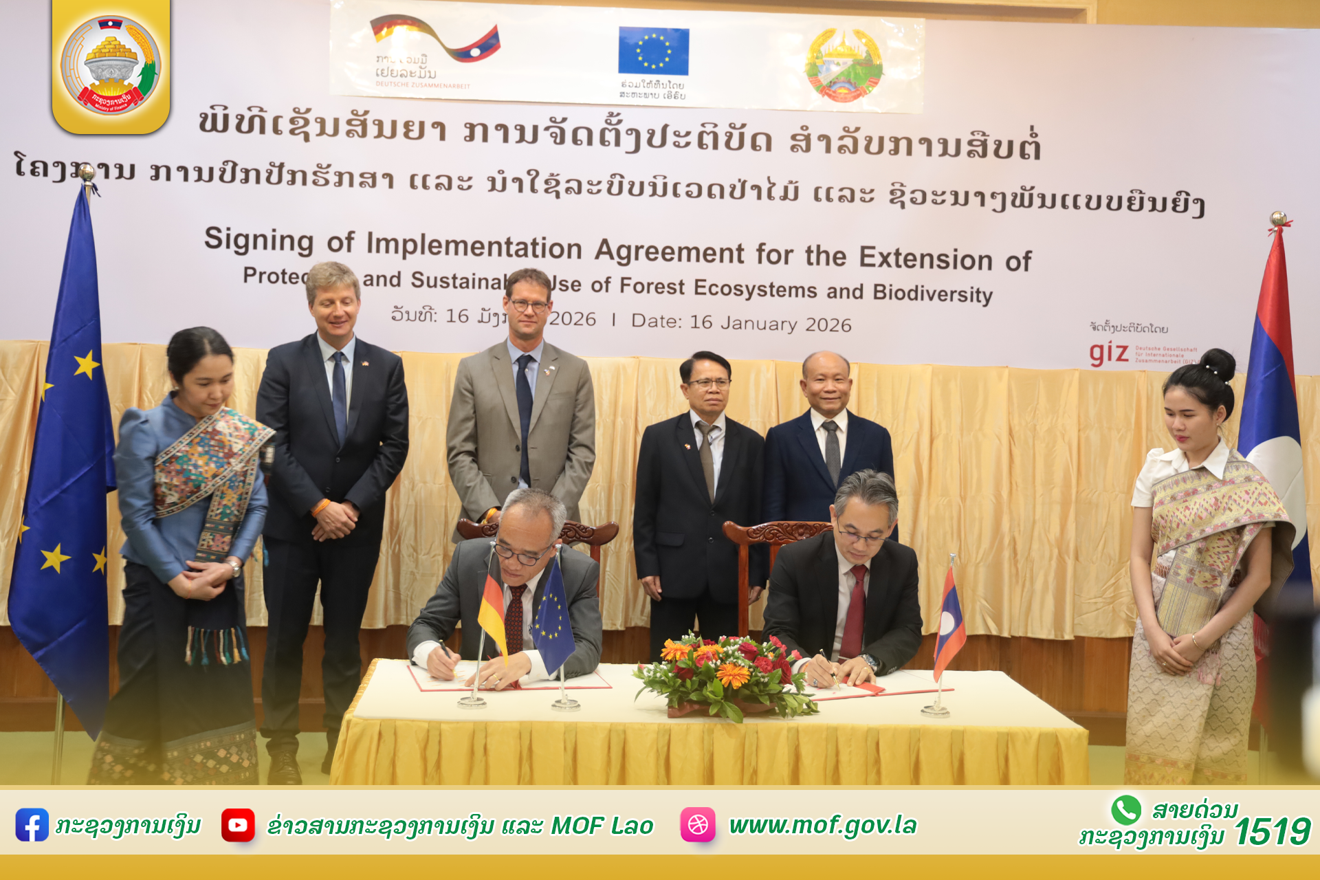 ໃນວັນທີ 16 ມັງກອນ 2026, ທີ່ນະຄອນຫລວງວຽງຈັນ, ສປປ ລາວ ໄດ້ຈັດພິທີລົງນາມໃນຂໍ້ຕົກລົງ ສືບຕໍ່ຂະຫຍາຍໄລຍະເວລາຈັດຕັ້ງປະຕິບັດໂຄງການ ປົກປັກຮັກສາ ແລະ ນຳໃຊ້ລະບົບນິເວດປ່າໄມ້ ແລະ ຊີວະນາໆພັນ ແບບຍືນຍົງ (ProFEB) ລະຫວ່າງ ລັດຖະບານ ແຫ່ງ ສປປ ລາວ ແລະ ສ. ເຢຍລະມັນ ເຊິ່ງແມ່ນຂໍ້ຕົກລົງເພີ່ມທຶນເຂົ້າໃນໂຄງການ ໂດຍຜ່ານກະຊວງຮ່ວມມືດ້ານເສດຖະກິດ ແລະ ການພັດທະນາ ແຫ່ງ ສະຫະພັນ ສາທາລະນະລັດ ເຢຍລະມັນ (BMZ) ແລະ ສະຫະພາບເອີຣົບ (EU).