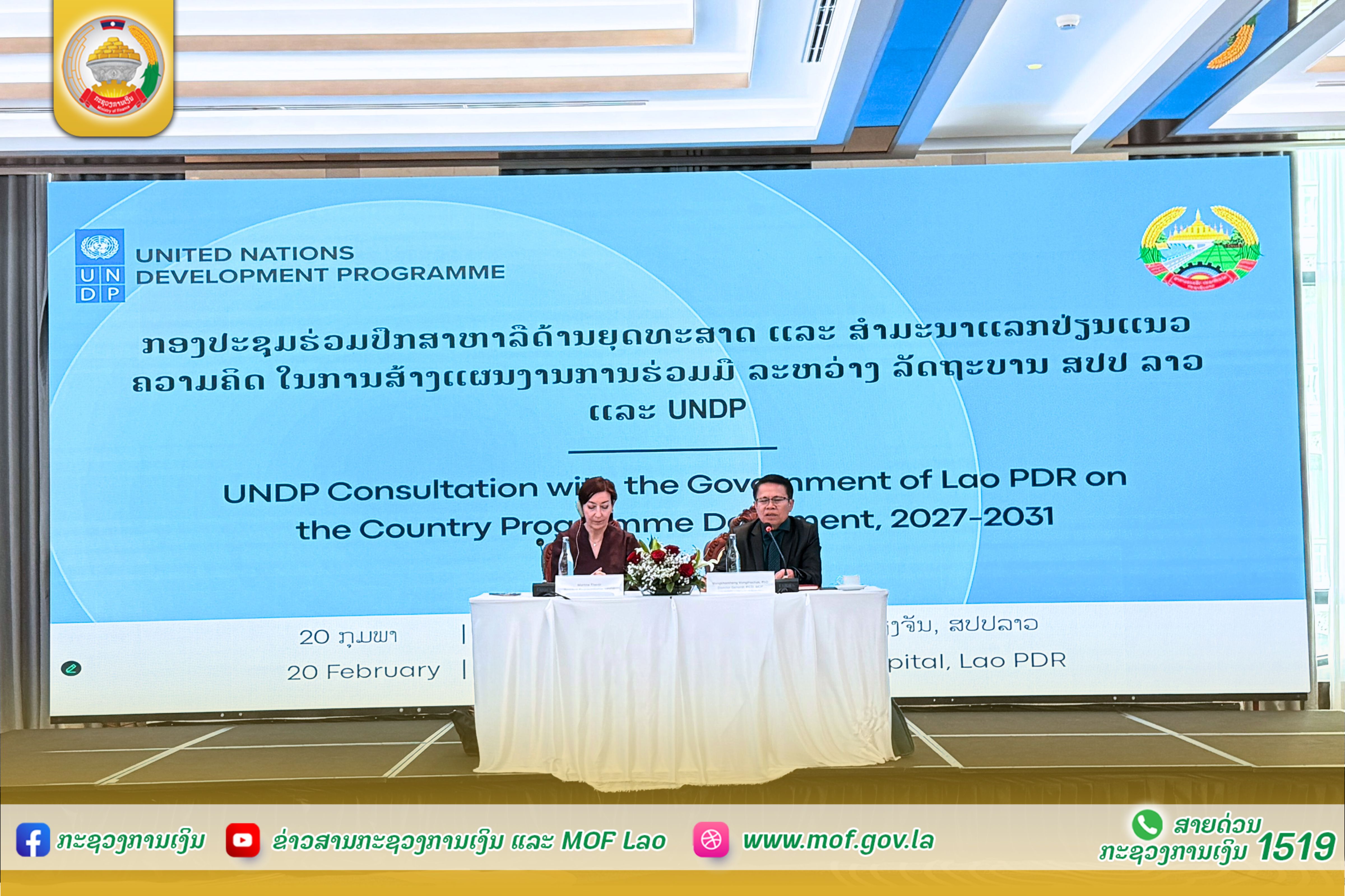 ໃນວັນທີ 20ກຸມພາ 2026 ທີ່ນະຄອນຫຼວງວຽງຈັນ ລັດຖະບານ ສປປ ລາວ ແລະ ອົງການ ສະຫະປະຊາຊາດ ເພື່ອການພັດທະນາ (UNDP) ໄດ້ເປີດກອງປະຊຸມປຶກສາຫາລືລະດັບວິຊາການ ກ່ຽວກັບຮ່າງເອກະສານແຜນງານການຮ່ວມມື ລະຫວ່າງ ລັດຖະບານ ສປປ ລາວ ແລະ ອົງການສະຫະປະຊາຊາດ ເພື່ອການພັດທະນາ (UNDP-CPD) ສົກປີ2027-2031 ໂດຍການເປັນປະທານ ຂອງ ທ່ານ ປອ ວົງຄໍາແຫງ ວົງທະຈັກ, ຫົວໜ້າກົມຮ່ວມມື ແລະ ການເງິນສາກົນ, ກະຊວງການເງິນຮ່ວມກັບ ທ່ານ ນາງ ມາຕິນ ເທີເຣີ (Martine Therer), ຜູ້ຕາງໜ້າອົງການ UNDPປະຈຳ ສປປ ລາວ. ໂດຍການເຂົ້າຮ່ວມຈາກສະພາແຫ່ງຊາດ, ຄະນະຈັດຕັ້ງສູນກາງພັກ, ສໍານັກງານນາຍົກລັດຖະມົນຕີ, ກະຊວງການເງິນ, ຂະແໜງການທີ່ກ່ຽວຂ້ອງ ແລະ ທິມງານຈາກອົງການ UNDP. ກອງປະຊຸມຄັ້ງນີ້ແມ່ນຮ່ວມກັນປຶກສາຫາລື ແລະ ກຳນົດທິດທາງຍຸດທະສາດຮ່ວມກັນ ສໍາລັບໄລຍະ 5 ປີຕໍ່ໜ້າ ໂດຍສຸມໃສ່ກຳນົດແຜນງານ ທີ່ສອດຄ່ອງກັບແຜນງົບປະມານຢ່າງຈະແຈ້ງ, ກົມກຽວ ແລະ ແທດເໝາະກັບສະພາບການພັດທະນາຕົວຈິງ. ນອກຈາກນັ້ນ, ຍັງຖືໄດ້ວ່າເປັນຂີດໝາຍທີ່ສຳຄັນຍິ່ງ ເພາະພວກເຮົາກໍາລັງຢືນຢູ່ໃນໄລຍະເວລາແຫ່ງການປ່ຽນຖ່າຍທາງປະຫວັດສາດຂອງຊາດ ໃນການກະກຽມຄວາມພ້ອມຮອບດ້ານ ເພື່ອອອກຈາກສະຖານະພາບປະເທດດ້ອຍພັດທະນາ (LDC) ໃນປີ 2026 ແລະ ຢູ່ໃນໄລຍະທີ່ພວກເຮົາພວມກ້າວເຂົ້າສູ່ການຈັດຕັ້ງປະຕິບັດ ແຜນພັດທະນາເສດຖະກິດ-ສັງຄົມ ແຫ່ງຊາດ ຄັ້ງທີ X (2026-2030) ໂດຍພາຍໃຕ້ 03 ຈຸດປະສົງຫຼັກຄື: 1) ເພື່ອຮັບຟັງການນໍາສະເໜີລາຍລະອຽດຂອງຮ່າງແຜນງານການຮ່ວມມື (CPD) ຈາກທິມງານຊ່ຽວຊານຂອງ ອົງການ UNDP; 2) ເພື່ອໃຫ້ບັນດາກະຊວງ ແລະ ຂະແໜງການຂອງ ສປປ ລາວ, ຄູ່ຮ່ວມພັດທະນາ ແລະ ພາກສ່ວນກ່ຽວຂ້ອງ ໄດ້ປະກອບຄໍາເຫັນຢ່າງກົງໄປກົງມາ ຕໍ່ກັບບູລິມະສິດ ແລະ ແນວທາງການຈັດຕັ້ງປະຕິບັດ ເພື່ອແນ່ໃສ່ຄວາມຕ້ອງການຕົວຈິງຂອງສູນກາງ ແລະ ທ້ອງຖິ່ນ; ແລະ 3) ເພື່ອຊອກຫາກາລະໂອກາດໃນການຮ່ວມມື ແລະ ສ້າງຄວາມກົມກຽວ ລະຫວ່າງ ຂໍ້ລິເລີ່ມຂອງລັດຖະບານ ແລະ ການສະໜັບສະໜູນຈາກອົງການ UNDP. ໃນກອງປະຊຸມ, ທ່ານ ປອ ວົງຄໍາແຫງ ວົງທະຈັກ ໄດ້ສະແດງຄວາມຊົມເຊີຍຕໍ່ອົງການ UNDP ທີ່ມີບົດບາດສຳຄັນໃນການເປັນຜູ້ປະສານງານ ແລະ ໃຫ້ການສະໜັບສະໜູນທາງດ້ານເຕັກນິກວິຊາການ. ພ້ອມກັນນີ້ ທ່ານ ຍັງໄດ້ໃຫ້ທິດຊີ້ນໍາທີ່ສໍາຄັນຕໍ່ກອງປະຊຸມ ໂດຍທ່ານຍົກໃຫ້ເຫັນວ່າຄວາມສໍາຄັນດ້ານຄວາມເປັນເຈົ້າການ ຂອງ ສປປ ລາວ ແມ່ນເປັນຫົວໃຈຫຼັກຂອງການຈັດຕັ້ງປະຕິບັດວຽກງານການພັດທະນາເສດຖະກິດ-ສັງຄົມ ໂດຍສະເພາະການນຳໃຊ້ຕົວເລັ່ງລັດ (Accelerators) ທີ່ທັນສະໄໝ ເປັນຕົ້ນແມ່ນການຫັນເປັນດິຈິຕອນ ແລະ ປັນຍາປະດິດ (AI), ຄວາມສະເໝີພາບທາງເພດ ແລະ ການເງິນແບບຍືນຍົງ ເພື່ອຂັບເຄື່ອນການພັດທະນາ ທີ່ບໍ່ປະລະໃຜໄວ້ເບື້ອງຫຼັງ. ສະນັ້ນ, ທ່ານໄດ້ຮຽກຮ້ອງໃຫ້ບັນດາທ່ານຜູ້ຕາງໜ້າຈາກກະຊວງ ແລະ ຂະແໜງການຕ່າງໆຈົ່ງໄດ້ນຳໃຊ້ປະສົບການຕົວຈິງຂອງຕົນ ເຂົ້າໃນການຄົ້ນຄວ້າ ແລະ ປະກອບຄຳເ