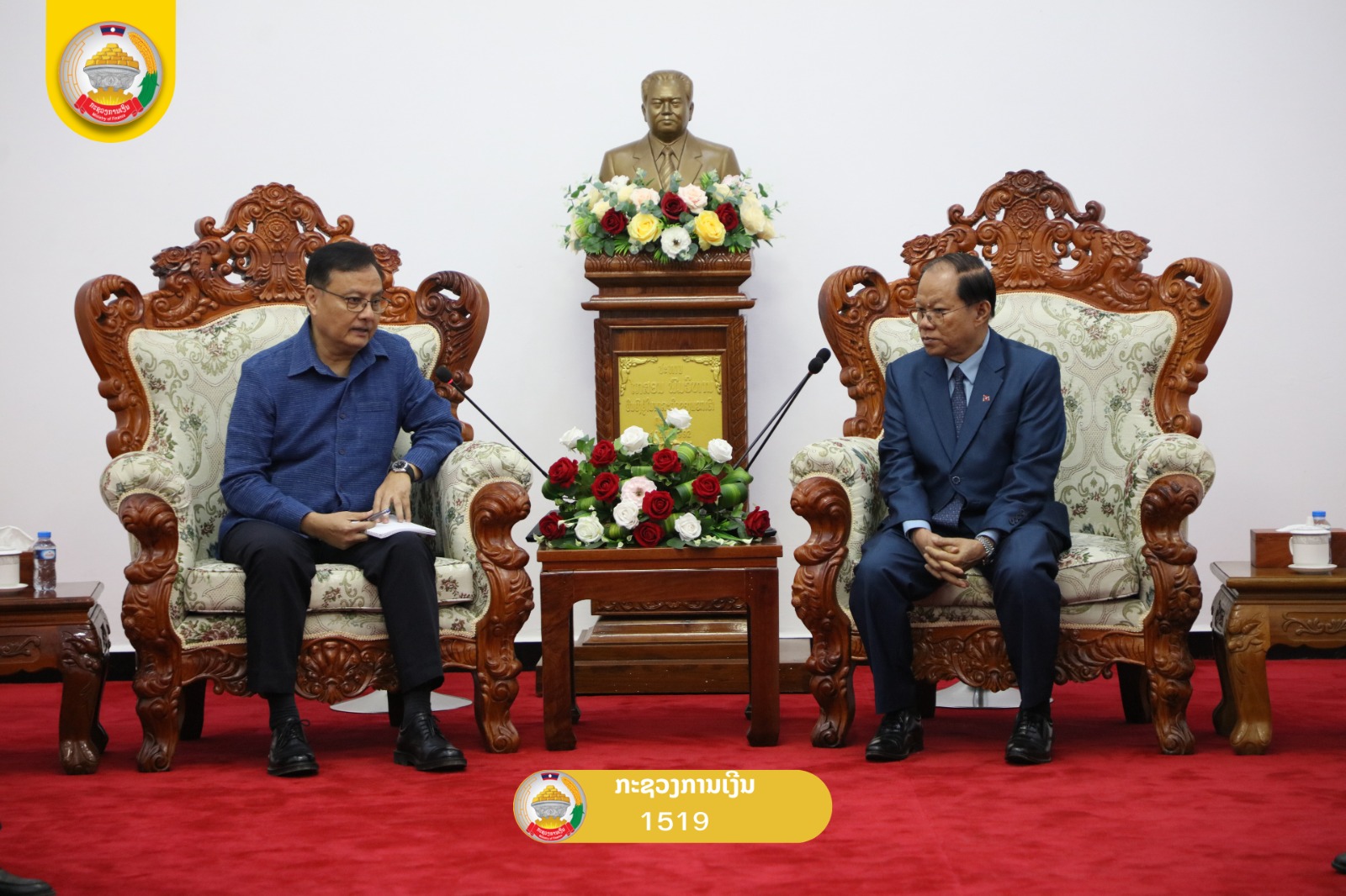 ໃນໂອກາດດັ່ງກ່າວ ທ່ານ ສັນຕິພາບ ພົມວິຫານ ກໍາມະການສູນກາງພັກ, ເລຂາຄະນະບໍລິຫານງານພັກ, ລັດຖະມົນຕີກະຊວງການເງິນ ພ້ອມດ້ວຍຄະນະ ໄດ້ເຂົ້າພົບປະ ທ່ານ ພົນໂທ ຄໍາກິ່ງ ຜຸຍຫຼ້າມະນີວົງ ກໍາມະການສູນກາງພັກ, ເລຂາຄະນະບໍລິຫານງານພັກແຂວງ ຫຼວງນໍ້າທາ ທີ່ ຫ້ອງວ່າການປົກຄອງແຂວງ ເພື່ອລາຍງານຜົນການສໍາຫຼວດ ສະພາບການຈັດຕັ້ງປະຕິບັດຂອງບັນດາໂຄງການ ພ້ອມທັງ ປຶກສາຫາລື ແຜນພັດທະນາໃນຕໍ່ໜ້າ ແລະ ຊຸກຍູ້ວຽກງານທັນສະໄໝໃນການຈັດເກັບລາຍຮັບ.