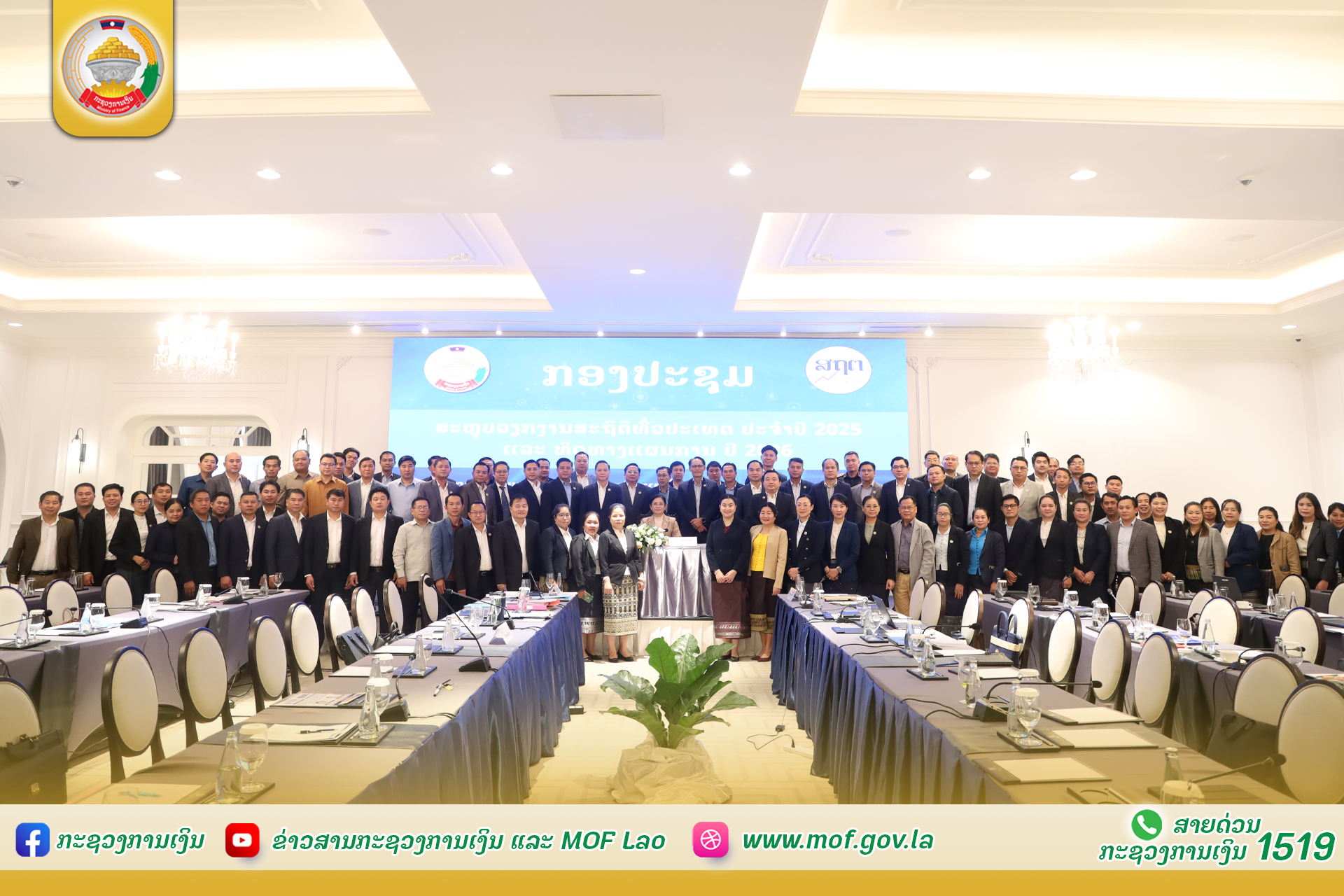 ໃນລະຫວ່າງ ວັນທີ 26-27 ກຸມພາ 2026, ສູນສະຖິຕິແຫ່ງຊາດ ກະຊວງການເງິນ ໄດ້ຈັດກອງປະຊຸມສະຫຼຸບວຽກງານສະຖິຕິທົ່ວປະເທດ ປະຈໍາປີ 2025 ແລະ ທິດທາງແຜນການ ປີ 2026 ພາຍໃຕ້ຫົວຂໍ້: "ຍົກສູງຄຸນນະພາບການຜະລິດ-ການເຜີຍແຜ່ຂໍ້ມູນສະຖິຕິ ເພື່ອການພັດທະນາເສດຖະກິດ-ສັງຄົມ ໃຫ້ເຂັ້ມແຂງ, ທັນສະໄໝ, ສີຂຽວ ແລະ ຍືນຍົງ" ໂດຍການເປັນປະທານຂອງທ່ານ ນາງ ເພັດສະໝອນ ສອນ ຫົວໜ້າສູນສະຖິຕິແຫ່ງຊາດ ແລະ ໄດ້ຮັບກຽດເຂົ້າຮ່ວມຂອງ ທ່ານ ສັນຕິພາບ ພົມວິຫານ ລັດຖະມົນຕີ ກະຊວງການເງິນ, ມີຜູ້ຕາງໜ້າຈາກບັນດາກົມອ້ອມຂ້າງກະຊວງການເງິນ, ຂະແໜງການອ້ອມຂ້າງ ແລະ ຜູ້ແທນຈາກບັນດາແຂວງໃນຂອບເຂດທົ່ວປະເທດ ເຂົ້າຮ່ວມ.