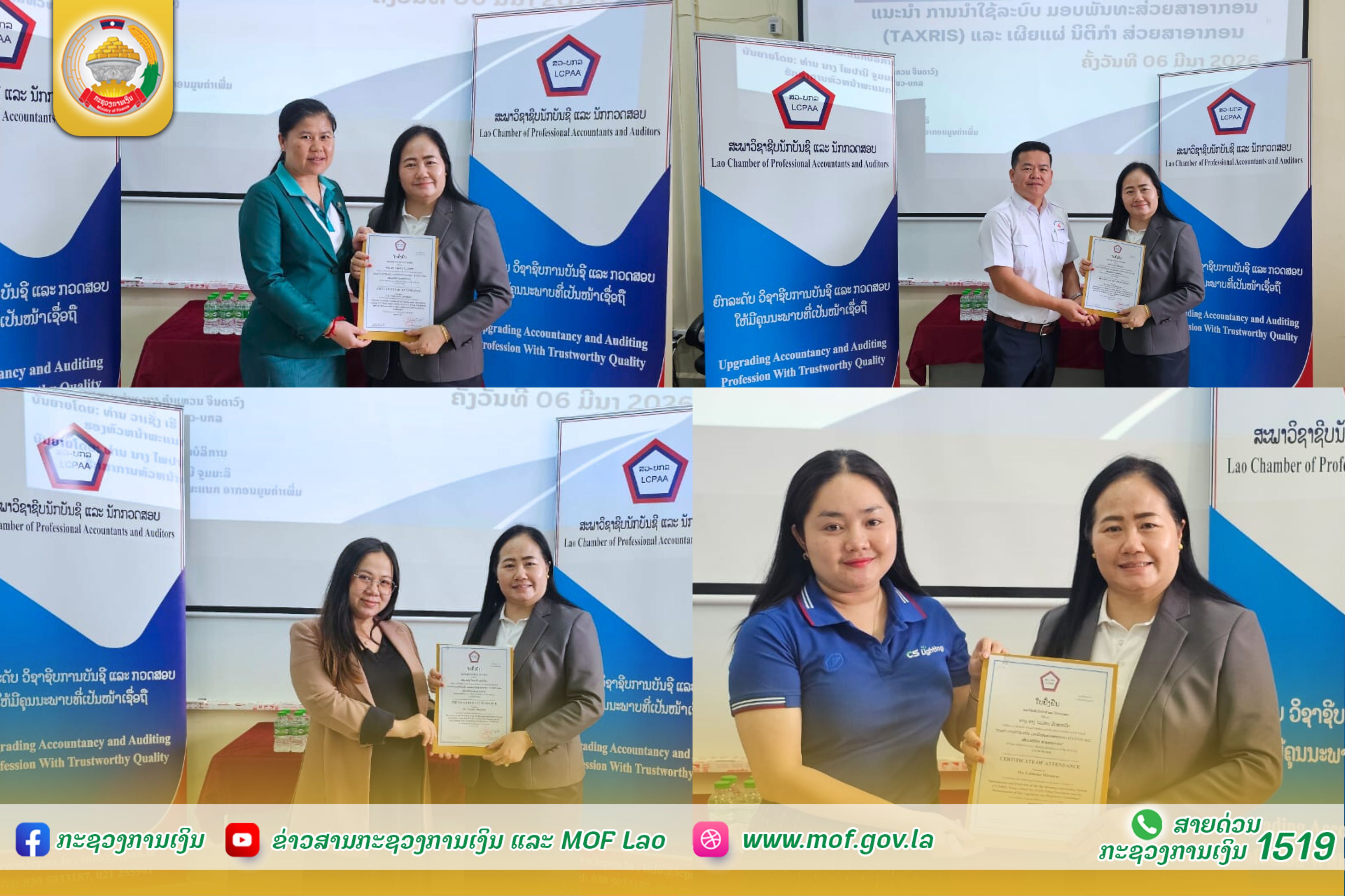 ການຝືກອົບຮົມໃນຄັ້ງນີ້ແມ່ນໄດ້ຈັດຂຶ້ນເປັນເວລາ ເຄິ່ງວັນ ແລະ ຈັດຝຶກອົບຮົມເປັນ 2 ລະບົບ ຄື: ແບບລະບົບເຂົ້າຮ່ວມເຊິ່ງໜ້າ ແລະ ເຂົ້າອອນລາຍ ຜ່ານ Google meet ເຊິ່ງກ່ອນການດໍາເນີນ ຝຶກອົບຮົມ ກໍໄດ້ຮັບກຽດຈາກ ທ່ານ ສອນໄຊ ສີລາເພັດ ປະທານ ສວ-ບກລ ໃຫ້ກຽດ ເປັນປະທານກ່າວເປີດ ພິທີ. ຈຸດປະສົງຂອງການຈັດຝຶກອົບຮົມ, ເພື່ອເປັນການຍົກລະດັບຄວາມຮູ້, ຄວາມສາມາດທາງດ້ານການນໍາໃຊ້ລະບົບ ມອບພັນທະສ່ວຍສາອາກອນ (TAXRIS) ແລະ ເພື່ອເປັນການສ້າງຂີດຄວາມສາມາດແບບຕໍ່ເນື່ອງ ໃຫ້ກັບນັກບັນຊີ ທີ່ຕິດພັນກັບຫົວໜ່ວຍທຸລະກິດຕ່າງໆ ທີ່ມີໜ້າທີ່ ແລະ ມີພາລະບົດບາດ ໃນການນໍາໃຊ້ລະບົບດັ່ງກ່າວ ແກ່ວິສາຫະກິດ. ສຳລັບເນື້ອໃນ ແລະ ຫົວຂໍ້ໃນການຝຶກອົບຮົມ ແມ່ນລົກເລິກທັງໃນພາກທິດສະດີ ແລະ ການປະຕິບັດຕົວຈິງ ດ້ວຍການນຳພາເຂົ້ານຳໃຊ້ລະບົບ ໂດຍເນື້ອໃນແມ່ນລົງເລິກກ່ຽວກັບ: ແນະນໍາພາບລວມການນໍາໃຊ້ລະບົບຄຸ້ມຄອງການເກັບລາຍຮັບສ່ວຍສາອາກອນ (TAXRIS); ແນະນໍາການບໍລິການແຈ້ງອາກອນປະເພດຕ່າງໆ ໃນລະບົບ(TAXRIS); ແນະນໍາ ການແຈ້ງແບບຟອມ ອມພ ແລະ ນິຕິກໍາທີ່ກຽວຂ້ອງ. ຜູ້ເຂົ້າຮ່ວມຝຶກອົບຮົມຄັ້ງນີ້ ມີທັງໝົດ 255 ທ່ານ, ໂດຍເຂົ້າຮ່ວມຝຶກອົບຮົມແບບເຊິ່ງໜ້າ 75 ທ່ານ ແລະ ເຂົ້າຮ່ວມທາງອອນລາຍ 180 ທ່ານ ທີ່ມາຈາກຫຼາຍພາກສ່ວນ ເຊັ່ນ: ເຂົ້າຮ່ວມໃນນາມພະນັກງານວິຊາການ ທີ່ເປັນແຂກຖືກເຊີນຂອງ ສວ-ບກລ 25 ທ່ານ, ສະມາຊິກ ບຸກຄົນ ຂອງ ສວ-ບກລ 98 ທ່ານ, ນັກຝຶກອົບຮົມ CPA 51 ທ່ານ ແລະ ບຸກຄົນທົ່ວໄປທີ່ເຂົ້າຮ່ວມນຳ 81 ທ່ານ. ໃນຕອນທ້າຍຂອງການຝຶກອົບຮົມ, ທ່ານ ສີປະພັນ ຄັນທະວົງສາ, ຫົວໜ້າຫ້ອງການ ສວ-ບກລ ໄດ້ກ່າວປິດຊຸດຝຶກອົບຮົມຢ່າງເປັນທາງການ ແລະ ໃຫ້ກຽດມອບໃບຢັ້ງຢືນ ໃຫ້ແກ່ຜູ້ເຂົ້າຮ່ວມຊຸດຝຶກອົບຮົມ ໂດຍ ທ່ານ ນາງ ຄຳແຫວນ ຈິນດາວົງ ຄະນະບໍລິຫານງານ ສວ-ບກລ.