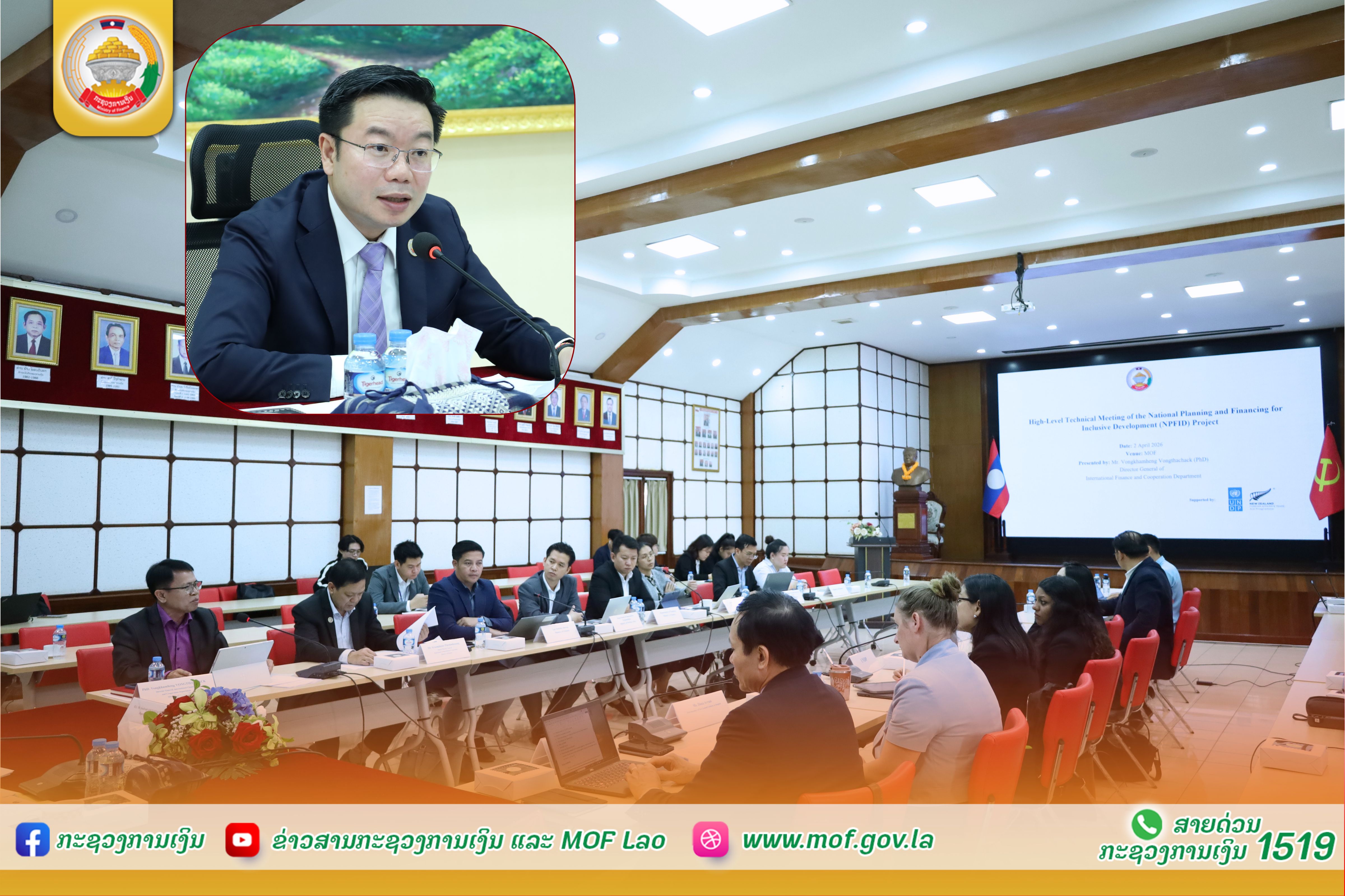 ຈຸດປະສົງຂອງກອງປະຊຸມ ເພື່ອທົບທວນຄືນຄວາມຄືບໜ້າຂອງການຈັດຕັ້ງປະຕິບັດໂຄງການ ນັບແຕ່ເລີ່ມຕົ້ນຈົນເຖິງໄຕມາດທີ 1 ຂອງປີ 2026 ແລະ ກໍານົດແຜນບຸລິມະສິດຍຸດທະສາດສຳລັບໄລຍະທີ່ເຫຼືອຂອງໂຄງການ. ໃນທີ່ປະຊຸມ, ທ່ານ ສຸລິວັດ ສຸວັນນະຈູມຄໍາ ຮອງລັດຖະມົນຕີ ກະຊວງການເງິນ ໄດ້ເນັ້ນໜັກເຖິງຄວາມສຳຄັນຂອງໂຄງການ NPFID ໃນການແກ້ໄຂຊ່ອງວ່າງດ້ານຂີດຄວາມສາມາດໃນການປະສານງານການຊ່ວຍເຫຼືອ, ຂໍ້ມູນສະຖິຕິເພື່ອການຕິດຕາມ ແລະ ການຄຸ້ມຄອງການຊ່ວຍເຫຼືອ ເພື່ອການພັດທະນາ ຢ່າງເປັນທາງການ (ODA). ພ້ອມກັນນັ້ນ, ທ່ານຍັງໄດ້ສະແດງຄວາມຂອບໃຈຕໍ່ລັດຖະບານ ນິວຊີແລນ ແລະ ອົງການ UNDP ທີ່ໃຫ້ການສະໜັບສະໜູນ ສປປ ລາວ ຢ່າງຕໍ່ເນື່ອງ, ໂດຍສະເພາະໃນການສ້າງແຜນພັດທະນາເສດຖະກິດ-ສັງຄົມ ແຫ່ງຊາດ 5 ປີ ຄັ້ງທີ 10 (10th NSEDP) ແລະ ຍຸດທະສາດການເງິນ. ໃນໂອກາດນີ້, ທ່ານ ດາວຊວນລາຍ (Dao Xuan Lai) ໄດ້ກ່າວເນັ້ນເຖິງຄວາມສຳຄັນຂອງການຮ່ວມມືວ່າ: “ອົງການ UNDP ຍັງຄົງມີຄວາມມຸ່ງໝັ້ນໃນການສະໜັບສະໜູນ ສປປ ລາວ ເພື່ອຫັນປ່ຽນຈາກ ການວາງແຜນແບບຂັ້ນຕອນ ໄປສູ່ການວາງແຜນແບບເນັ້ນໃສ່ຜົນໄດ້ຮັບ (Outcome-based), ການສ້າງຄວາມເຂັ້ມແຂງໃຫ້ແກ່ລະບົບຂໍ້ມູນ ແລະ ກົນໄກການຕິດຕາມ ຜ່ານເຄື່ອງມືທັນສະໄໝ ເຊັ່ນ Dashboard ແລະ ການຄາດການອະນາຄົດ (Foresight) ຈະຊ່ວຍໃຫ້ລັດຖະບານສາມາດຮັບມືກັບສິ່ງທ້າທາຍດ້ານເສດຖະກິດ ແລະ ສັງຄົມ ໄດ້ຢ່າງມີປະສິດ ທິພາບ ແລະ ທັນການ.” ທ່ານນາງ Dana Avram ໄດ້ສະແດງທັດສະນະໃນນາມຕົວແທນຜູ້ໃຫ້ທຶນວ່າ: “ລັດ ຖະບານນິວຊີແລນ ມີຄວາມພາກພູມໃຈທີ່ໄດ້ເປັນສ່ວນໜຶ່ງໃນການຊຸກຍູ້ການພັດທະນາແບບທົ່ວເຖິງໃນ ສປປ ລາວ. ພວກເຮົາເຫັນດີຕໍ່ການຂະຫຍາຍໄລຍະເວລາຂອງໂຄງການອອກໄປ ເພື່ອຮັບປະກັນວ່າບັນດາກິດຈະກຳທີ່ສຳຄັນ ໂດຍສະເພາະການສ້າງບຸກຄະລາກອນຮຸ່ນໃໝ່ (Y-LEAP) ແລະ ການປັບປຸງຍຸດທະສາດການເງິນ ຈະໄດ້ຮັບການຈັດຕັ້ງປະຕິບັດຢ່າງເປັນຮູບປະທຳ ແລະ ສ້າງຜົນປະໂຫຍດໃນໄລຍະຍາວໃຫ້ແກ່ປະເທດ.” ກອງປະຊຸມໄດ້ນໍາສະເໜີແຜນເລັ່ງລັດການຈັດຕັ້ງປະຕິບັດ ເພື່ອໃຫ້ບັນລຸຄາດໝາຍພາຍໃນກຳນົດເວລາຂອງໂຄງການ ຊື່ງໄດ້ກຳນົດວຽກງານບຸລິມະສິດທີ່ສໍາຄັນປະກອບມີ: 1) ສຸມໃສ່ການສ້າງຄູ່ມືການຄຸ້ມຄອງແບບທີ່ອີງໃສ່ຜົນໄດ້ຮັບ (RBM) ໃຫ້ສຳເລັດສົມບູນ ເພື່ອສ້າງຂີດຄວາມສາມາດໃຫ້ແກ່ພະນັກງານວາງແຜນ ແລະ ຜັນຂະຫຍາຍໄປສູ່ບັນດາກະຊວງ, ຂະແໜງການ ແລະ ທ້ອງຖິ່ນ; 2) ປັບປຸງກົນໄກການຕິດຕາມແຜນພັດທະນາເສດຖະກິດ-ສັງຄົມ ແຫ່ງຊາດ (NSEDP) ຜ່ານການສ້າງລະບົບສະຫຼູບລາຍງານຖານຂໍ້ມູນ (Dashboard), ສ້າງຄວາມເຂັ້ມແຂງໃຫ້ແກ່ການລາຍງານຂໍ້ມູນ SDG ແລະ ການປະເມີນ ແລະ ສ້າງແຜນສືບຕໍ່ສຳລັບ ໂຄງການສ້າງຊ່ຽວຊານ ແລະ ນັກວິຊາການຮຸ່ນໜຸ່ມ Young Local Experts and Professionals (Y-LEAP) ພາຍໃຕ້ໂຄງການ NPFID; 3) ການເຊື່ອມສານຍຸດທະສາດການເງິນເຂົ້າໃນ ແຜນພັດທະນາເສດຖະ ກິດ-ສັງຄົມ ແຫ່ງຊາດ ຄັ້ງທີ 10, ການສ້າງບົດລາຍງານລາຍຈ່າຍພາສີ-ອາກອນ (Tax Expenditure Report)